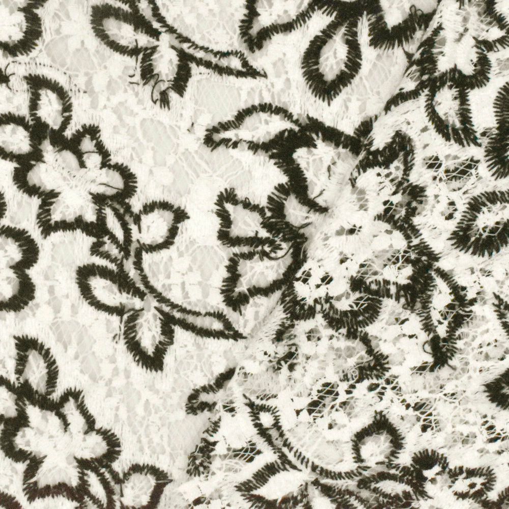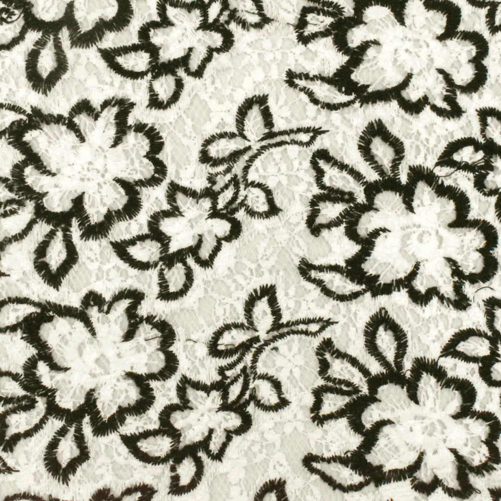 Black-White-Ivory Floral Embroidered Lace Knit Fabric