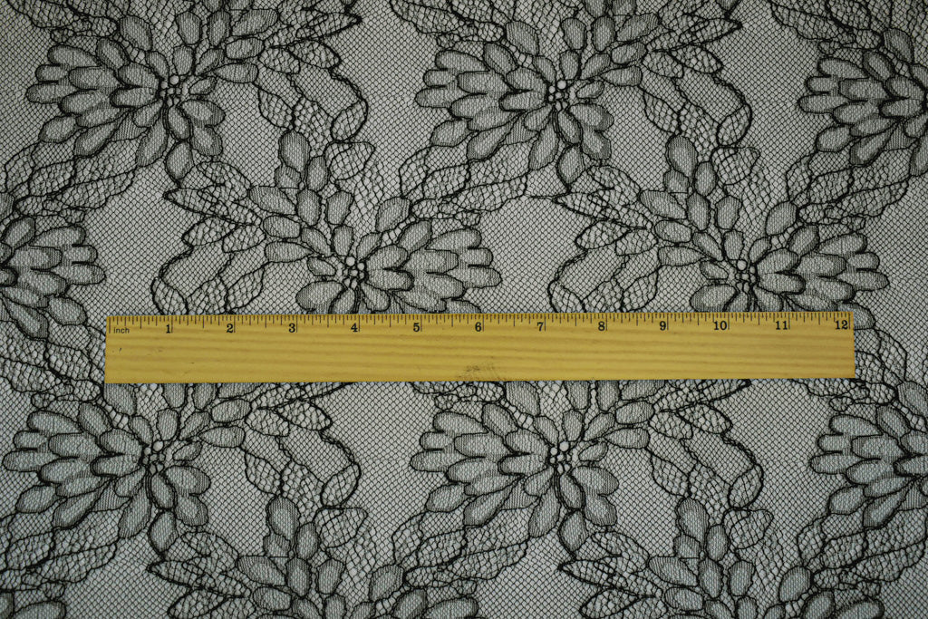 Black-White-Silver Polyester Nylon Floral Lace Mesh Knit Fabric
