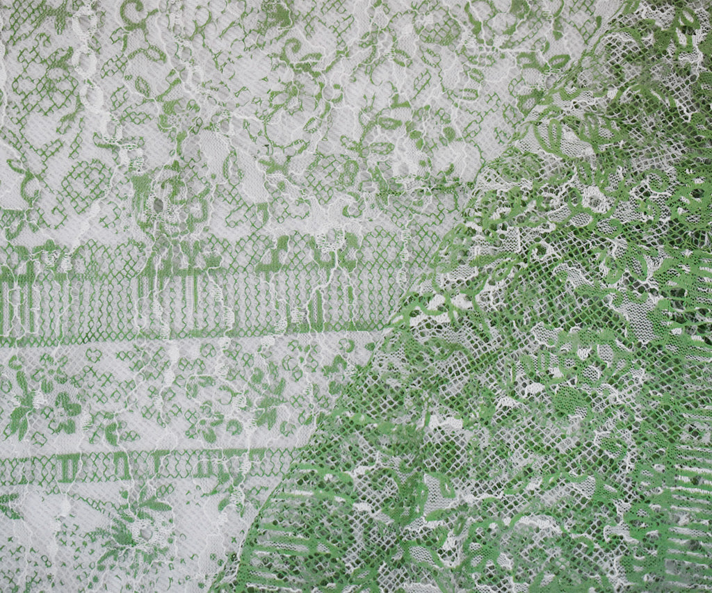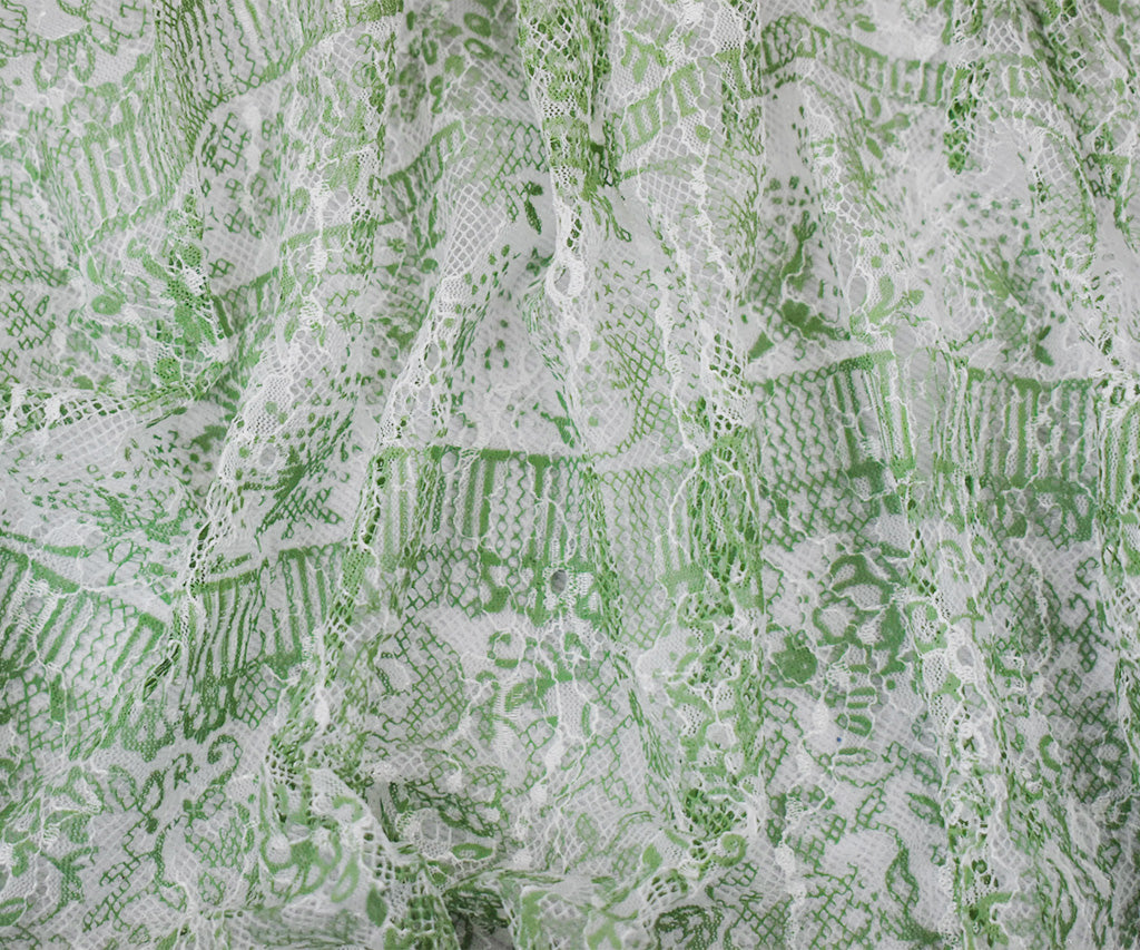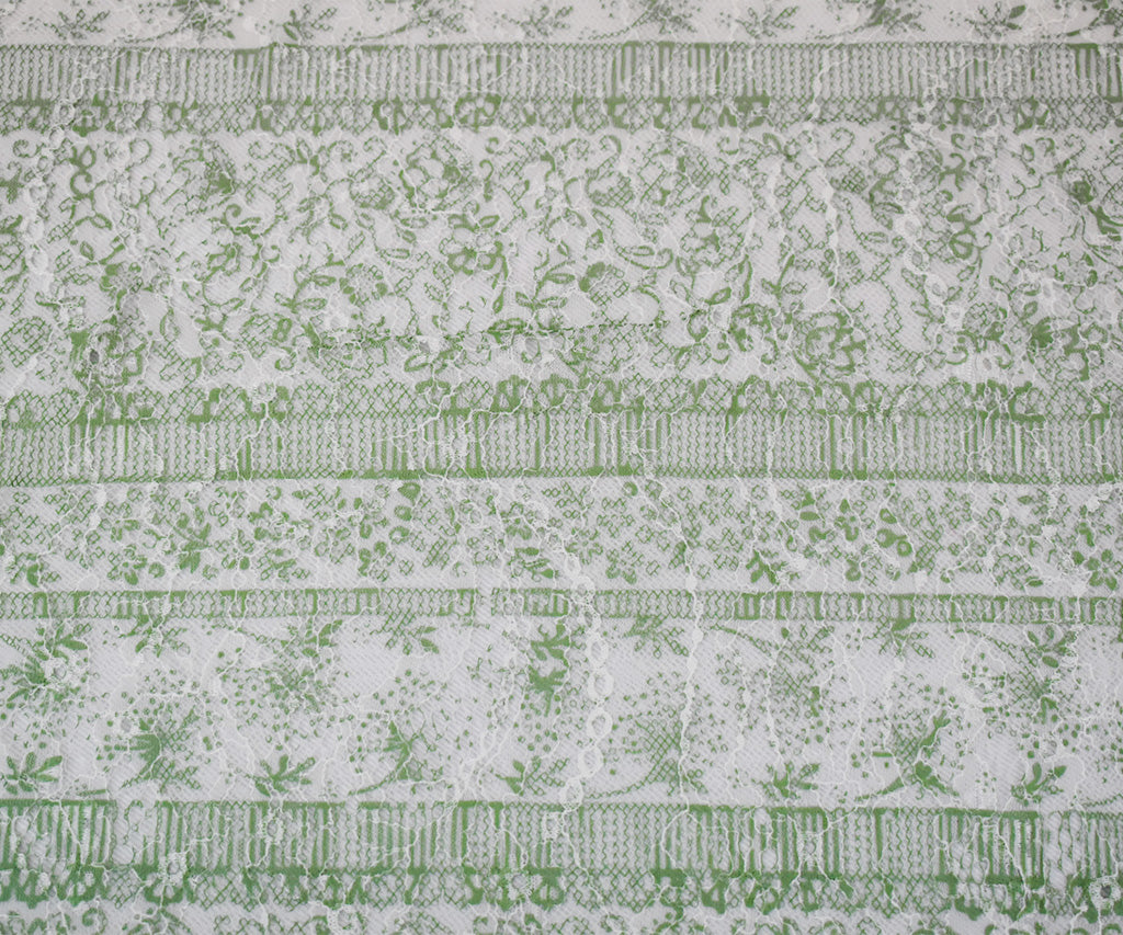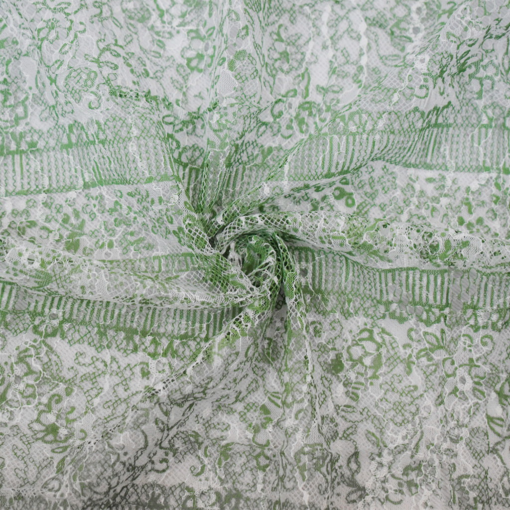 Green-White Nylon Floral Stripe Printed Lace Mesh Knit Fabric