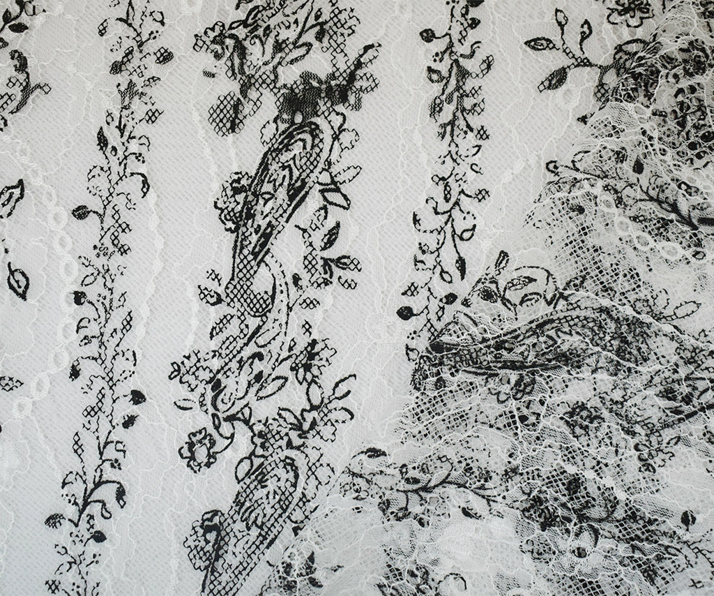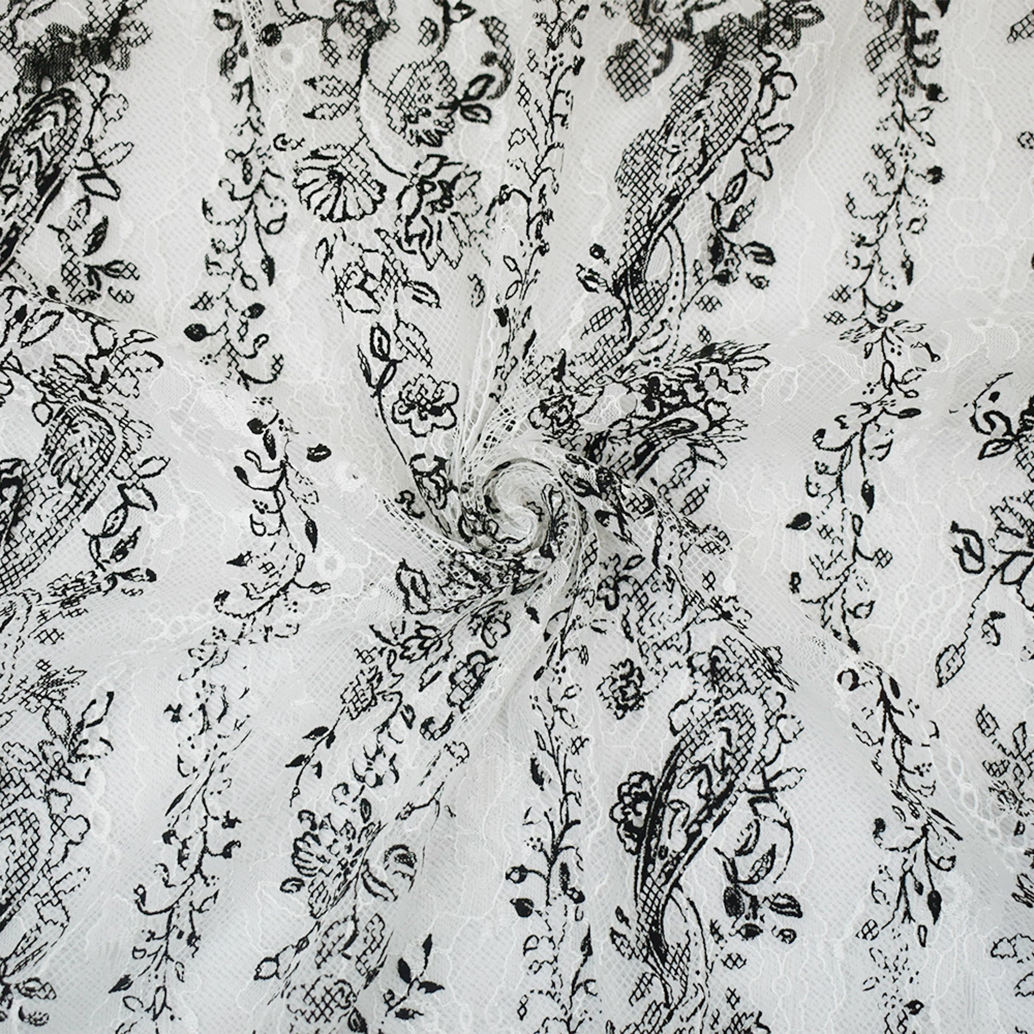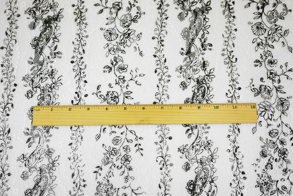 White-Black Nylon Floral Paisley Printed Lace Mesh Knit Fabric