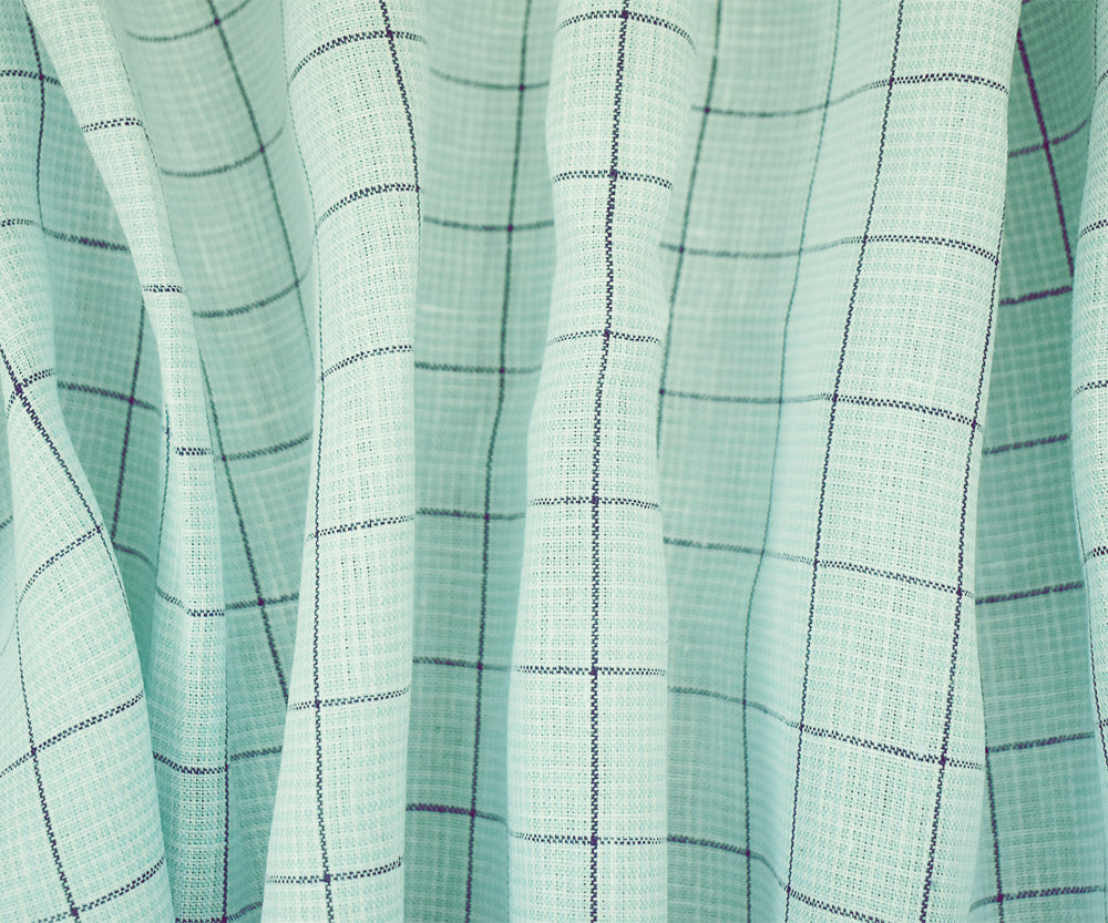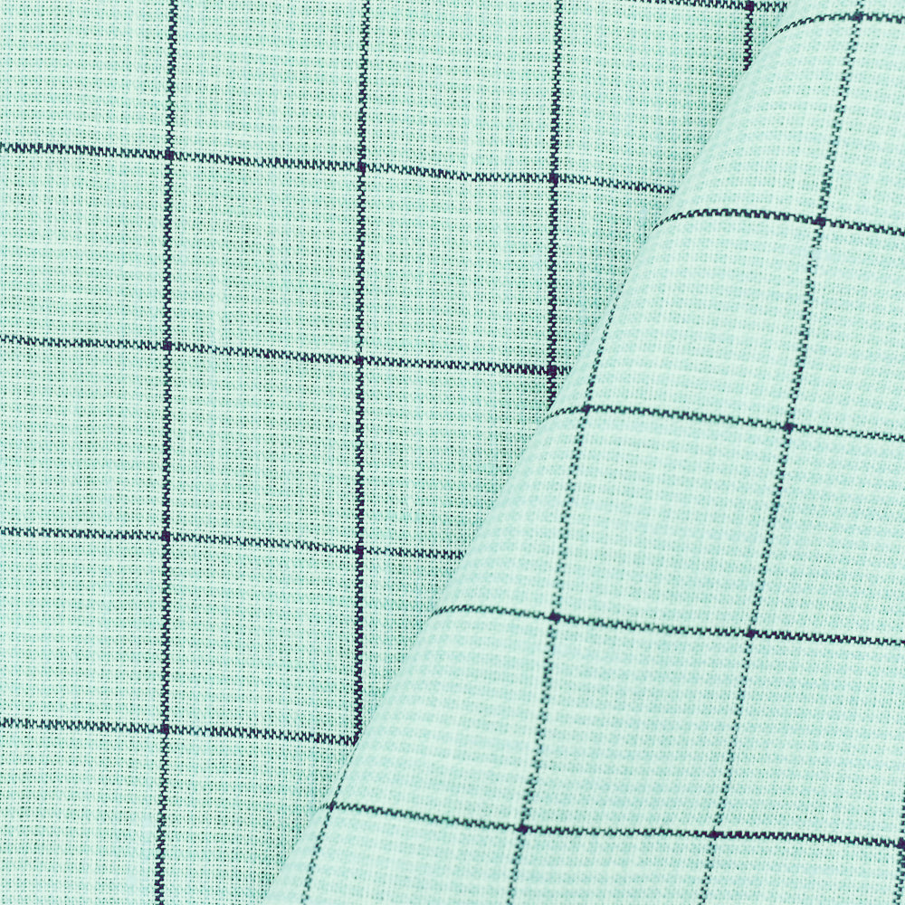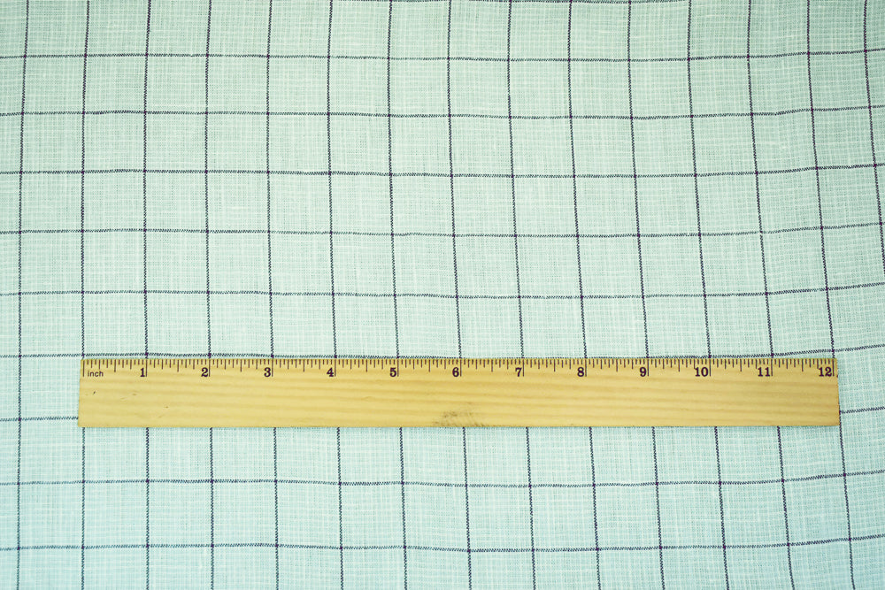 -150 gsm Spence Bryson Katesbridge 100% Linen yarn dyed check grid-like pattern woven with a soft sanforised finish. Line if needed. Made in Ireland.