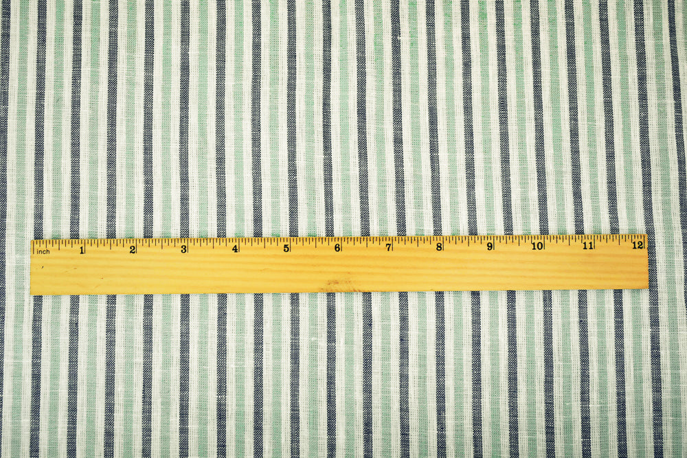 Green-Gray-White Spence Bryson Striped Irish Linen Woven Fabric
