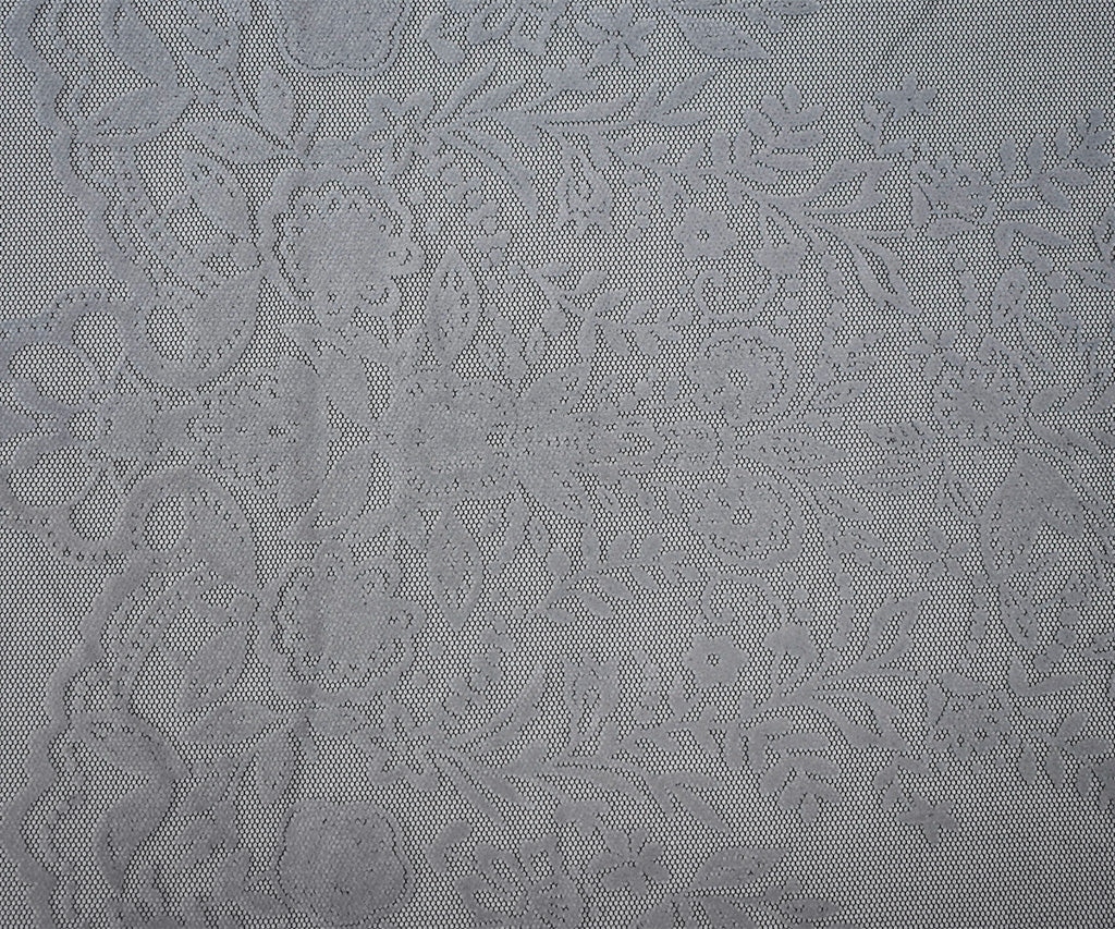 Black-White Nylon Floral Border Scallop Printed Mesh Tulle Knit Fabric