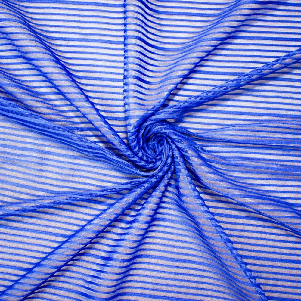Blue Poly Stretch Spandex Rib Like Mesh Knit Fabric