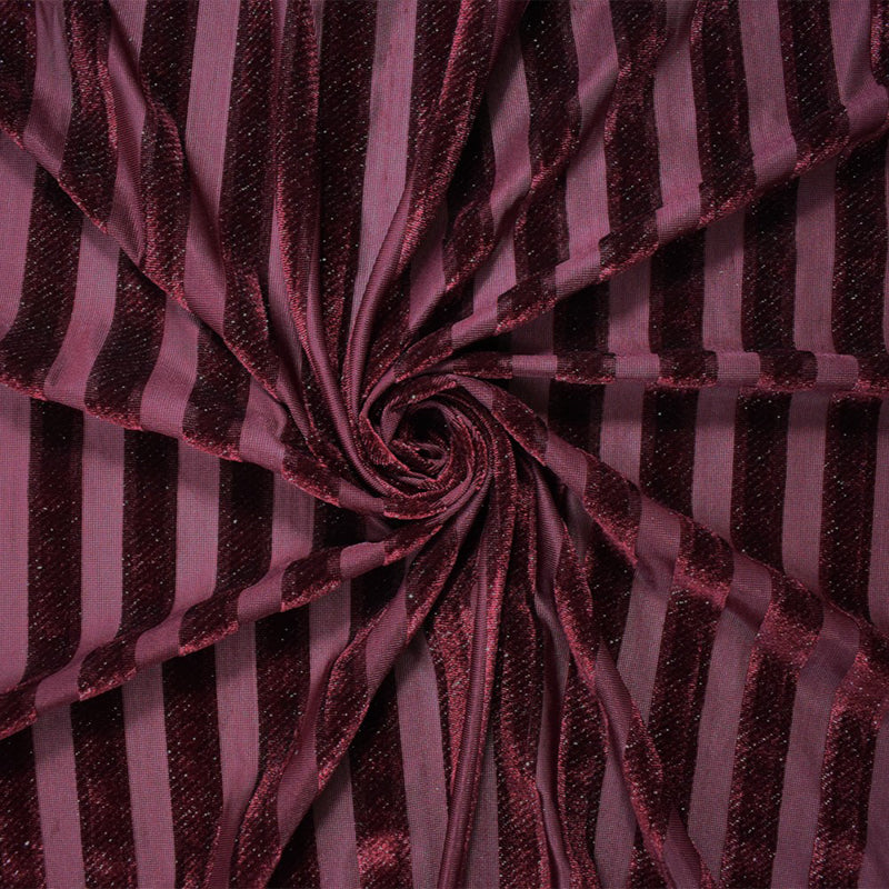 Red-Sliver Poly Burnout Stripe Stretch Velvet Mesh Knit Fabric