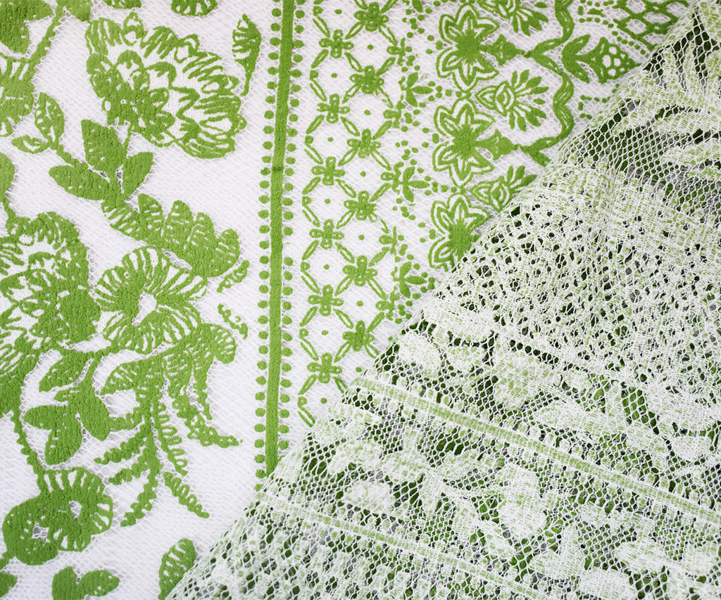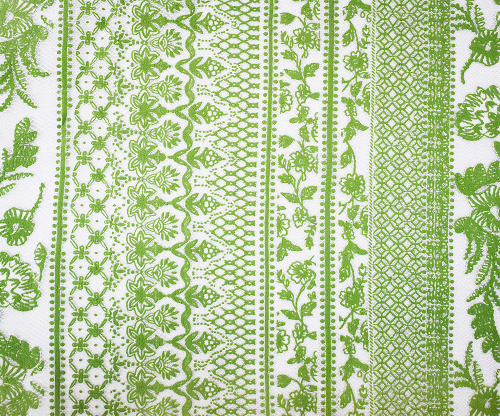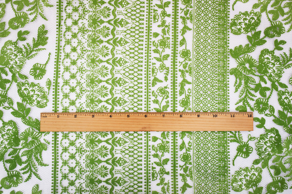 White-Green Nylon Cotton Floral Stripe Printed Mesh Tulle Knit Fabric