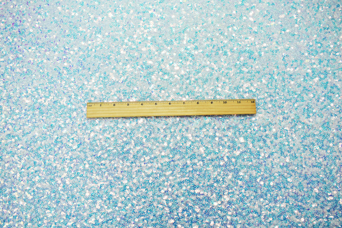 White-Iridescent Nylon-Poly Sequin Stretch Spandex Mesh Knit Fabric