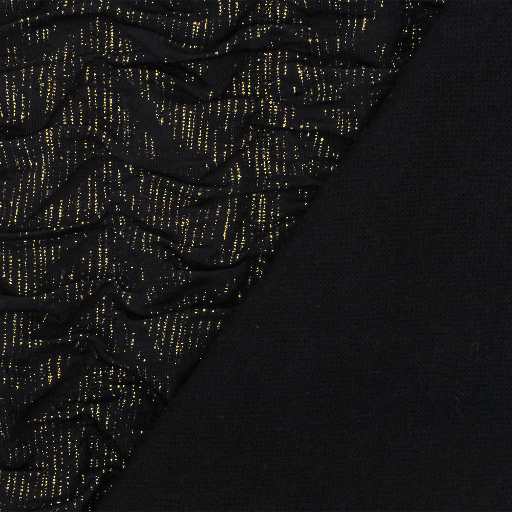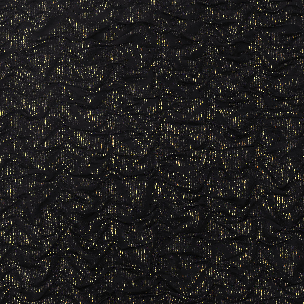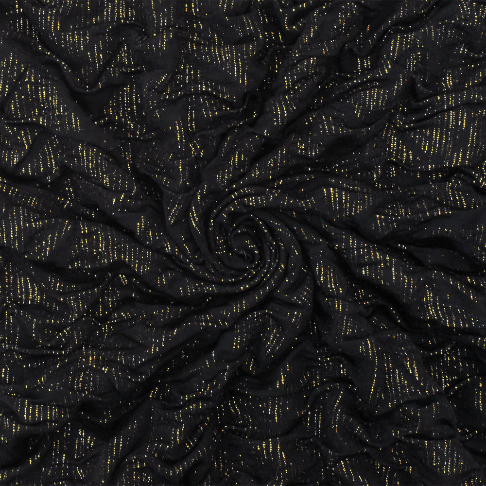 Black-Gold Texture Crinkle Metallic Print Stretch Double Knit Fabric