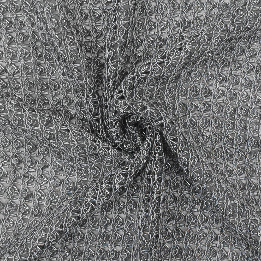 Dark Gray-Silver-White Texture Rayon Metallic Knit Fabric