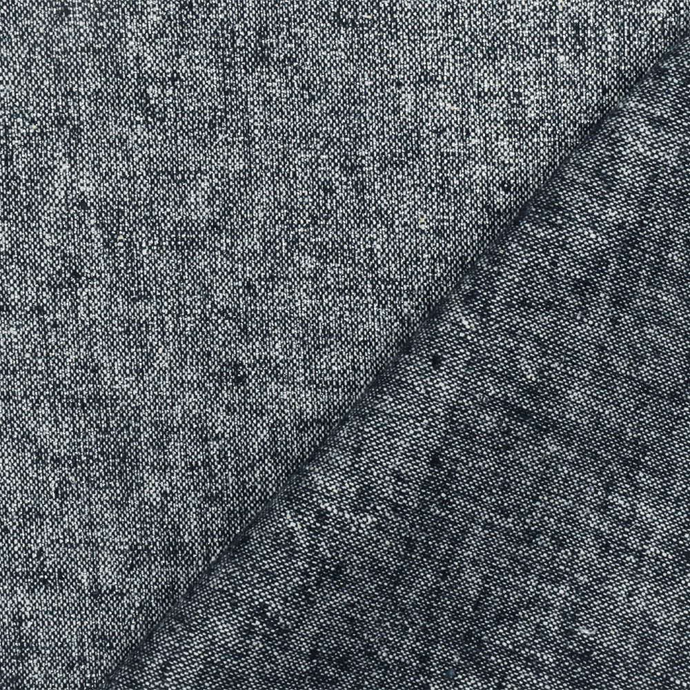 Silver-White-Navy Metallic Texture Stretch Cotton Chambray Woven Fabric