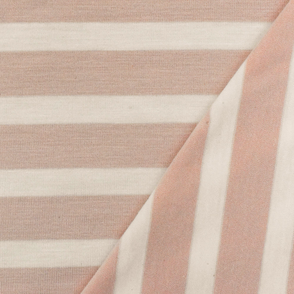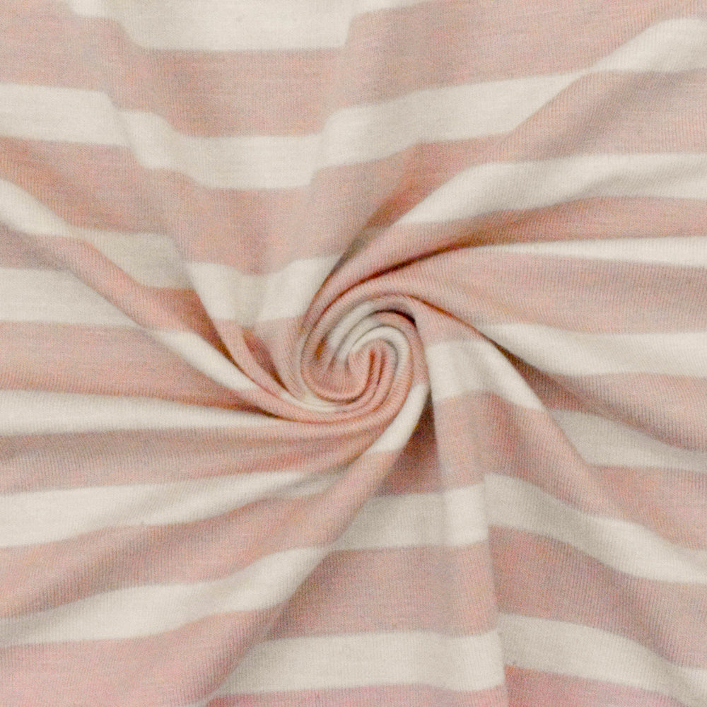 Baby Pink-Ivory Stripe Stretch Spandex Rayon Modal Jersey Knit Fabric
