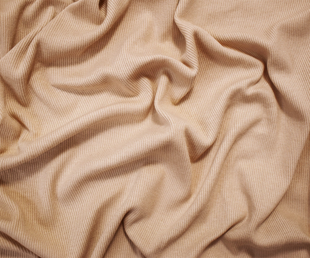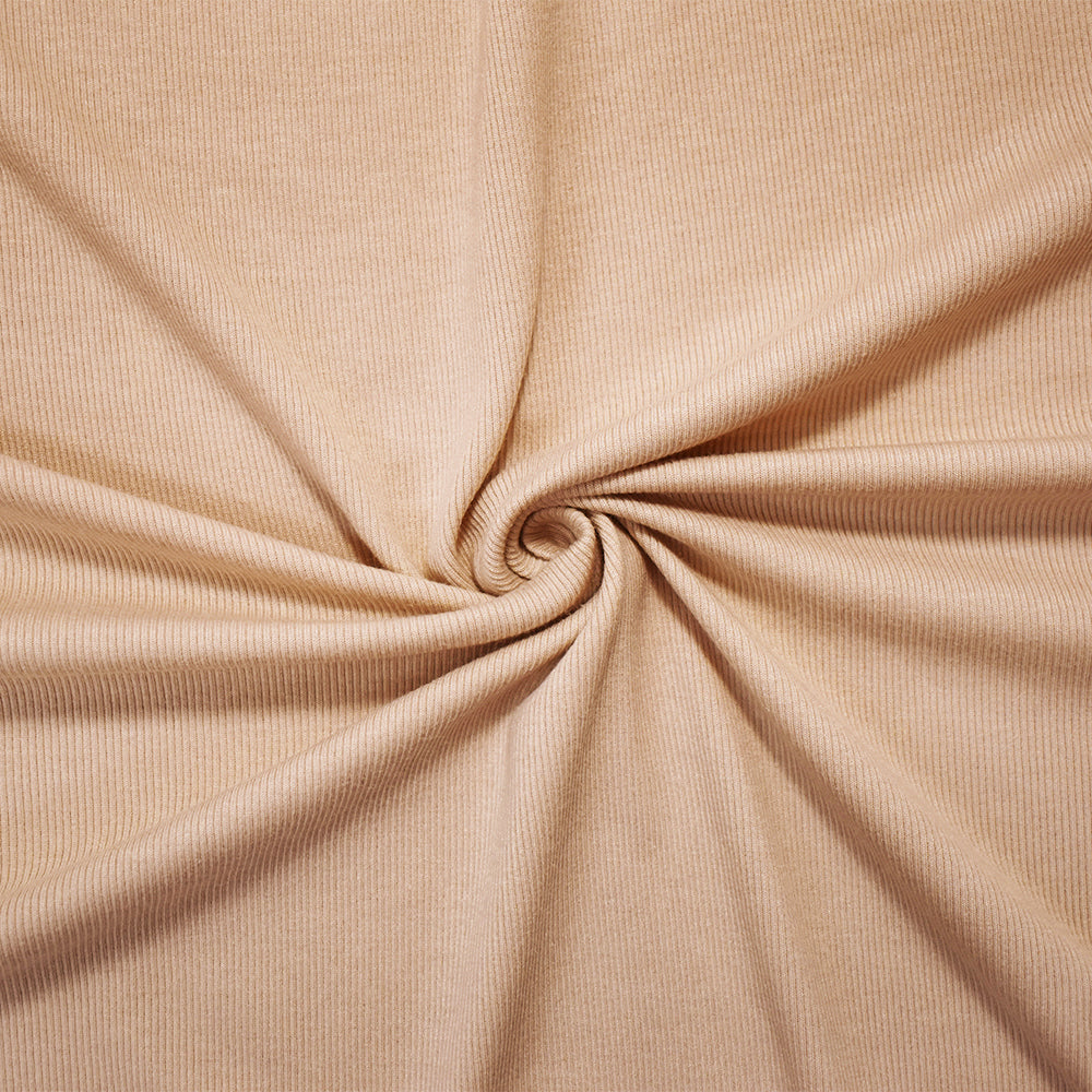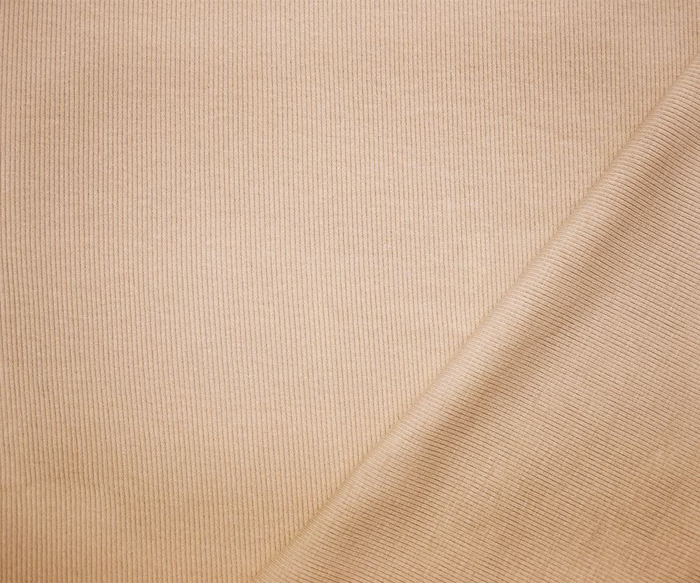 Beige Modal Blend Stretch Spandex 2x2 Solid Rib Knit Fabric