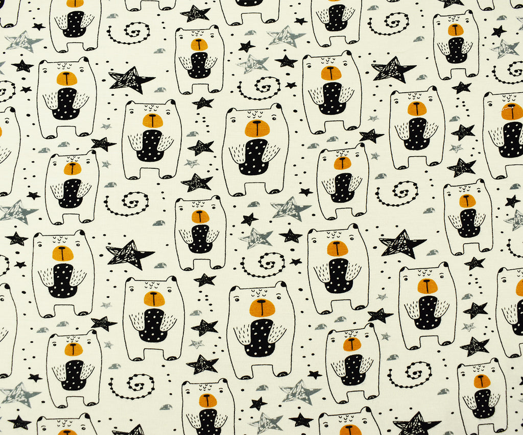Black-Multi Rayon Modal Bear Star Print Stretch Spandex Jersey Knit Fabric