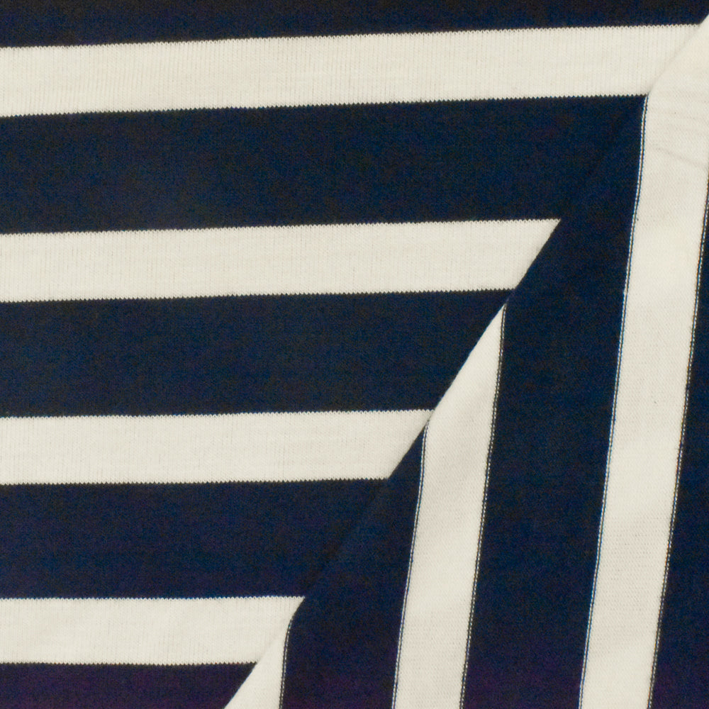 Dark Navy-Ivory Stripe Stretch Spandex Rayon Modal Jersey Knit Fabric
