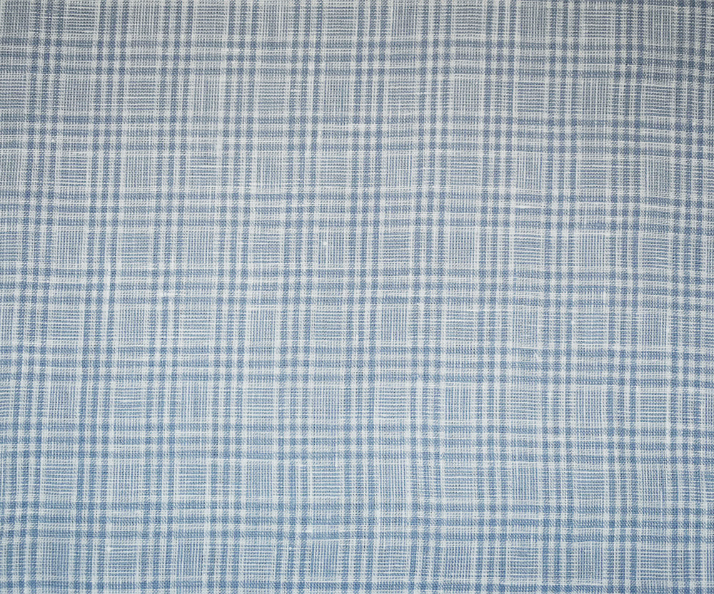 White-Blue Spence Bryson Plaid Irish Linen Woven Fabric