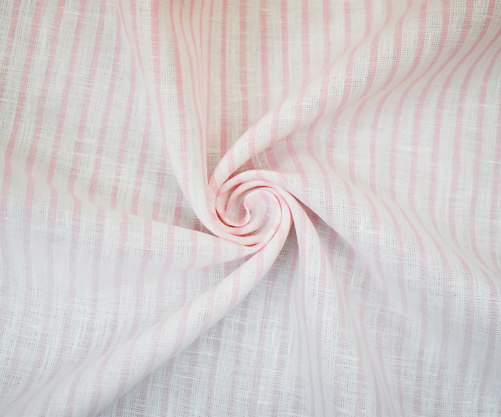 White-Pink Striped Spence Bryson Striped Washed Irish Linen Woven Fabric