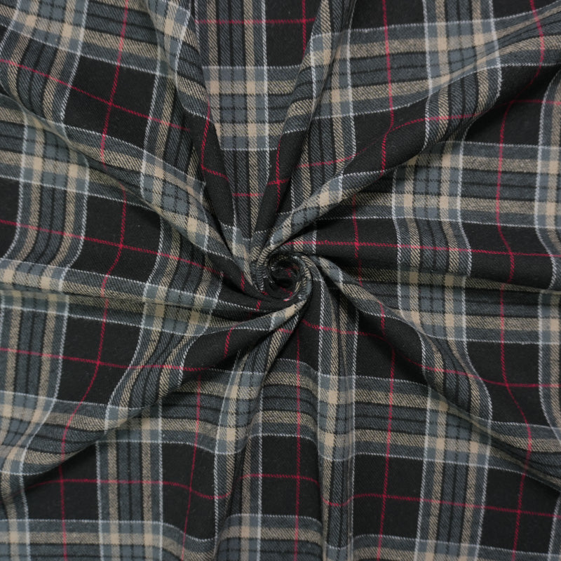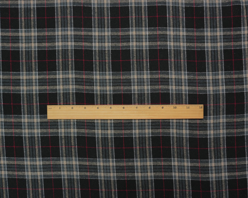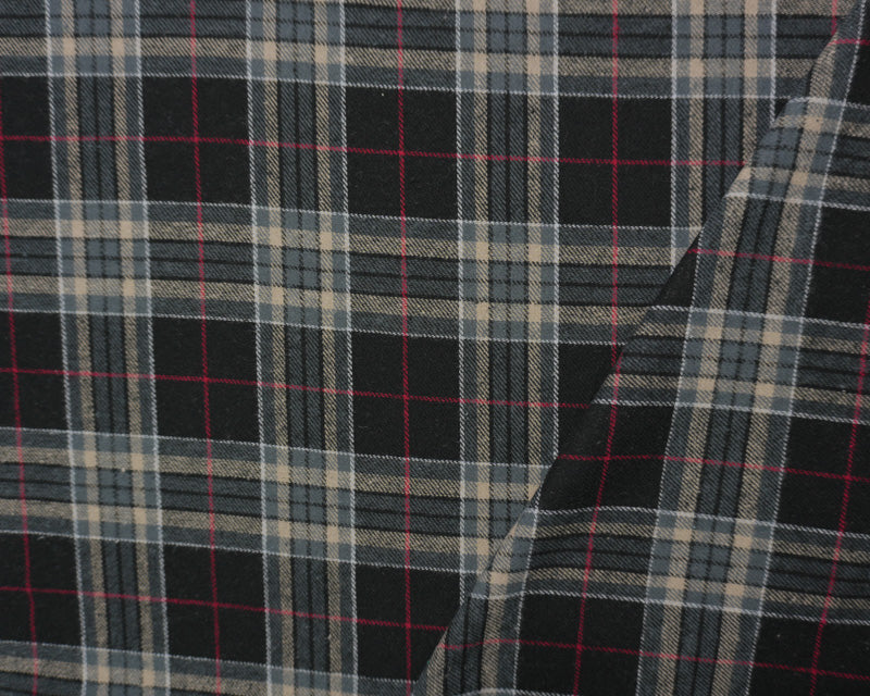 Black and Tan Multi Yarn Dyed Plaid Flannel Fabric