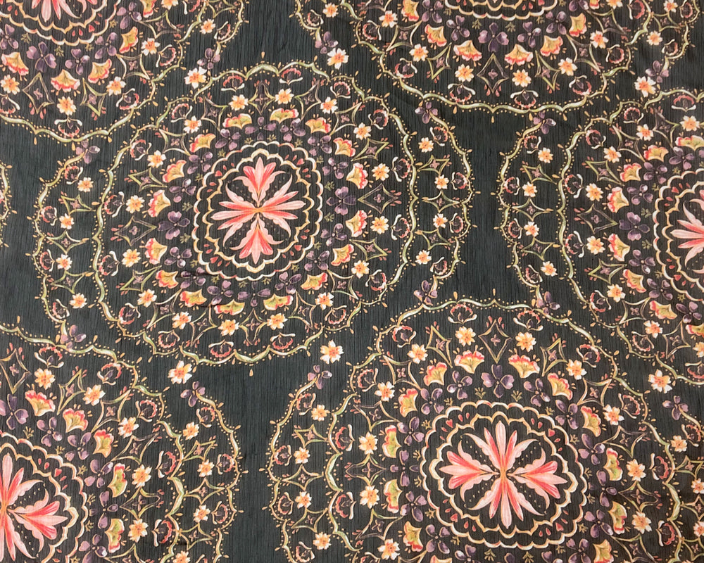 -Black-Orange-Multi Poly Foral Baroque Floral Printed Yoryu Chiffon Woven Fabric