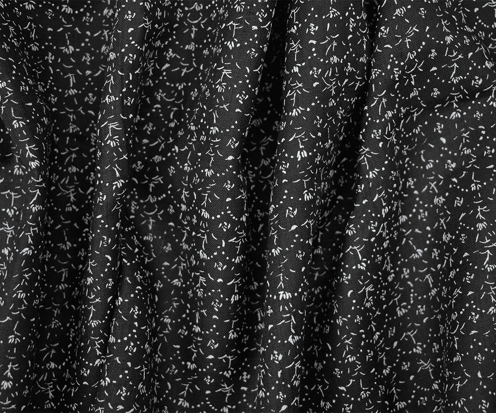 Black-White Nani IRO Dainty Abstract Pattern Printed Linen Sheeting Fabric