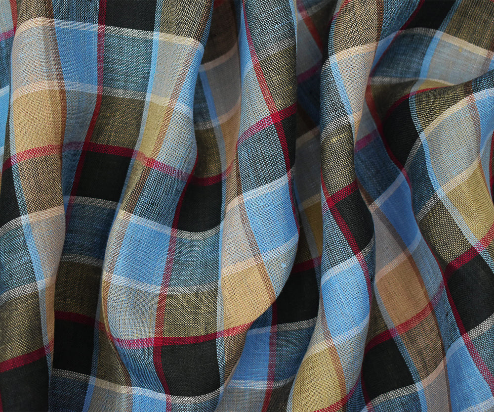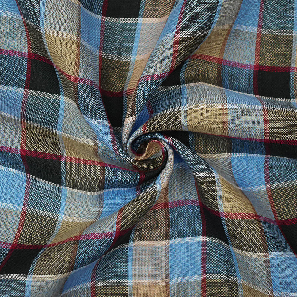 Blue-Beige-Multi Check Linen Woven Fabric
