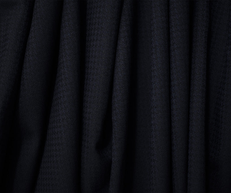 Blue-Black Wool Rayon Houndstooth Twill Woven Suiting Fabric