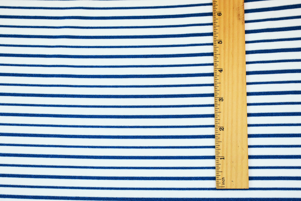 Blue Sparkle-White Stripe Stretch Spandex Knit Fabric