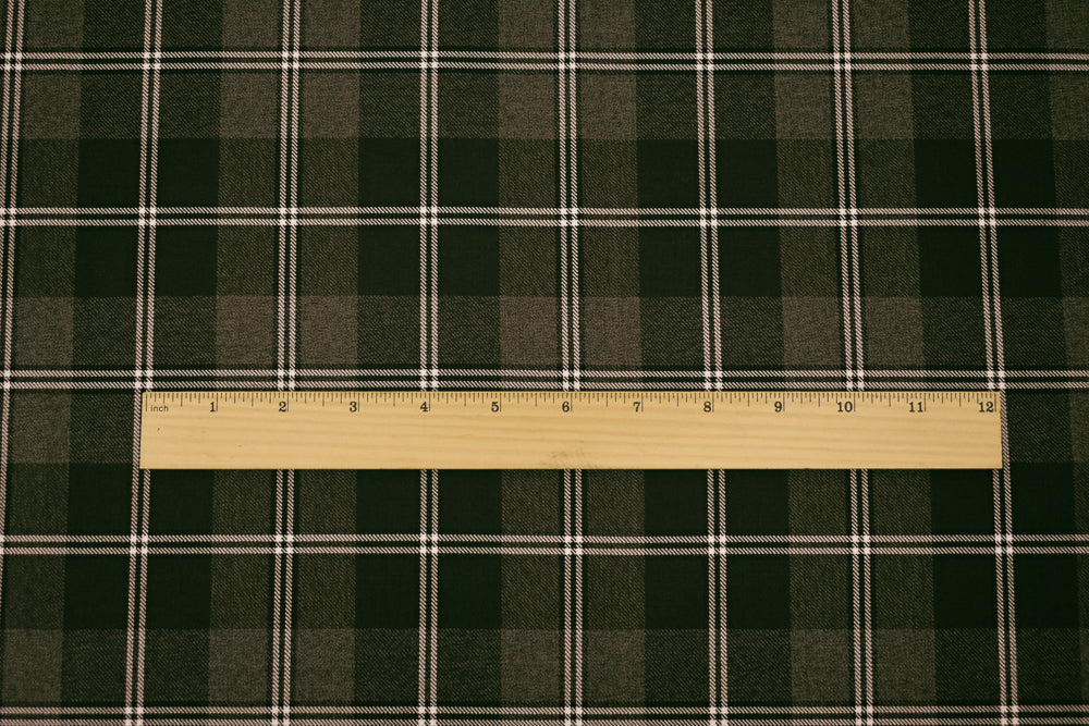 Brown-Black-White Wool Poly Plaid Woven Twill Suiting Fabric