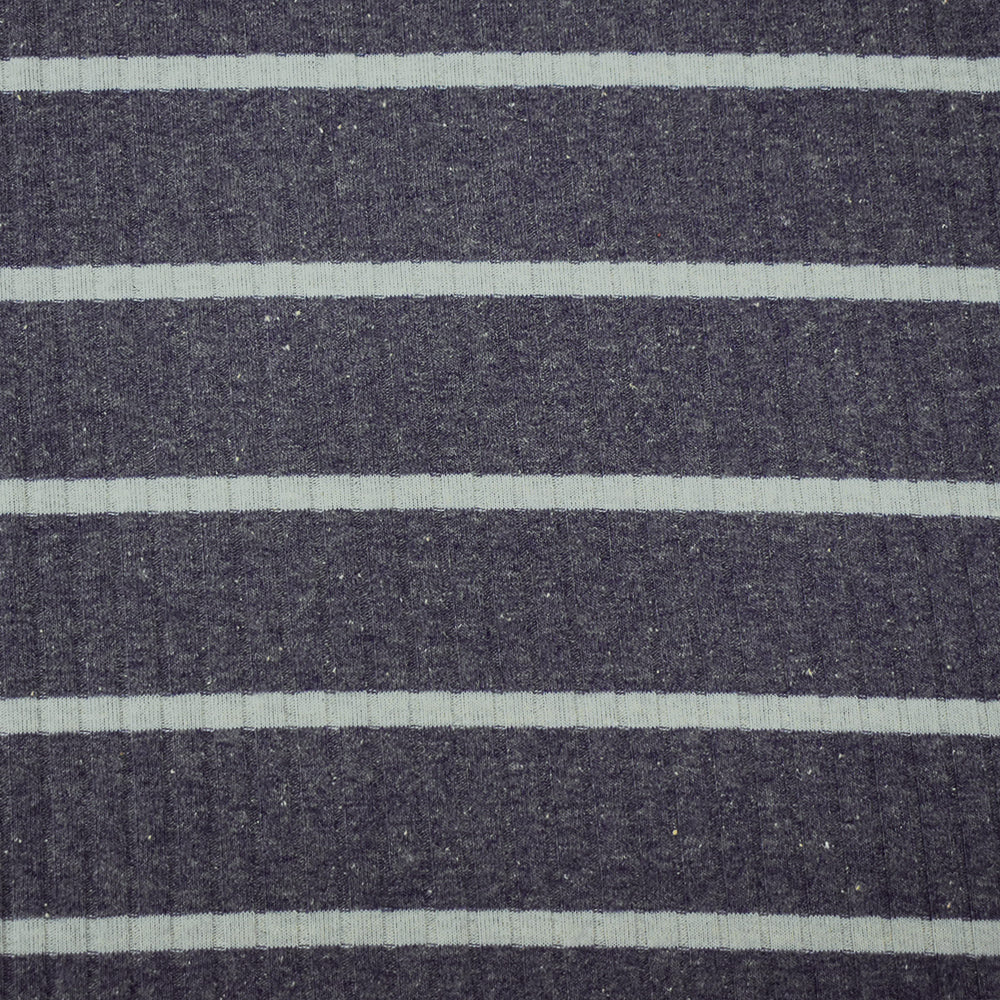 Dusty Blue-Gray Cotton-Poly Stretch Spandex Stripe Rib Knit Fabric