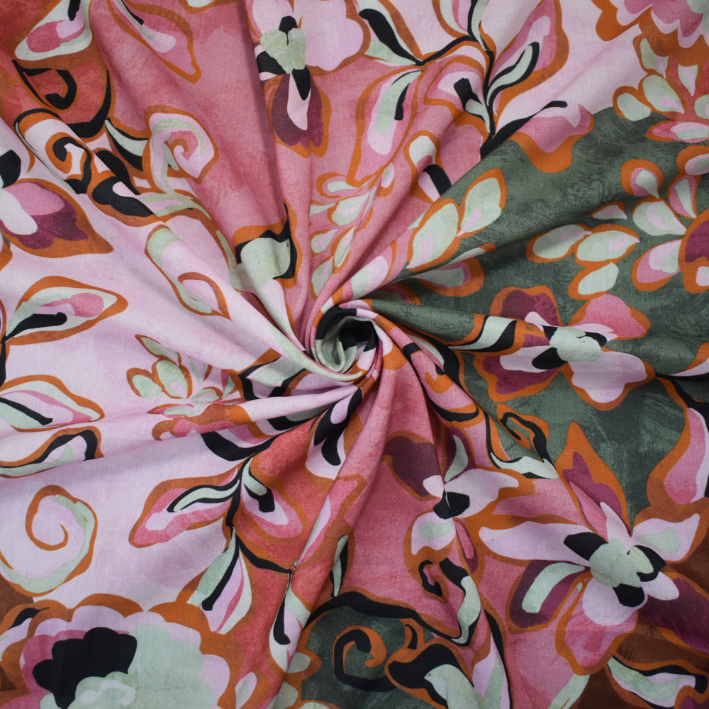 Pink-Red-Multi Cotton-Rayon Floral Printed Lawn Woven Fabric