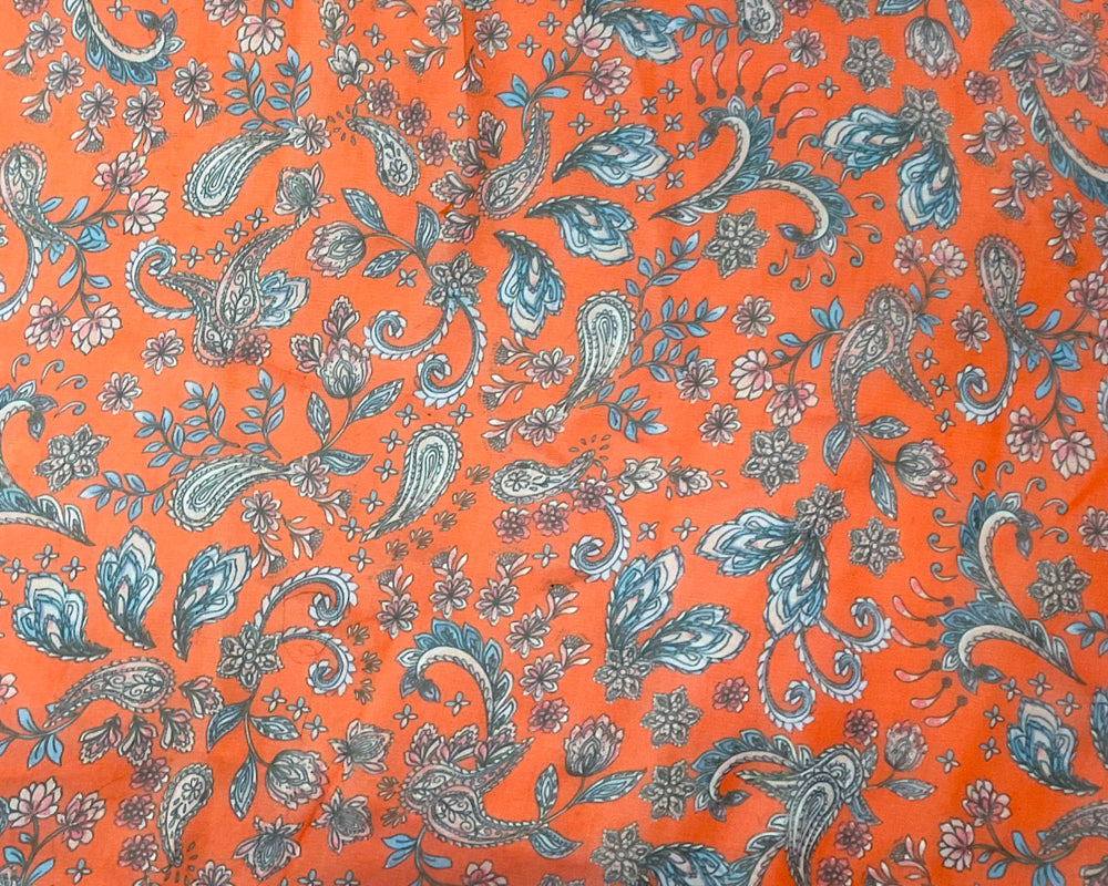 Red Orange-Multi Poly Floral Printed Yoryu Chiffon Woven Fabric
