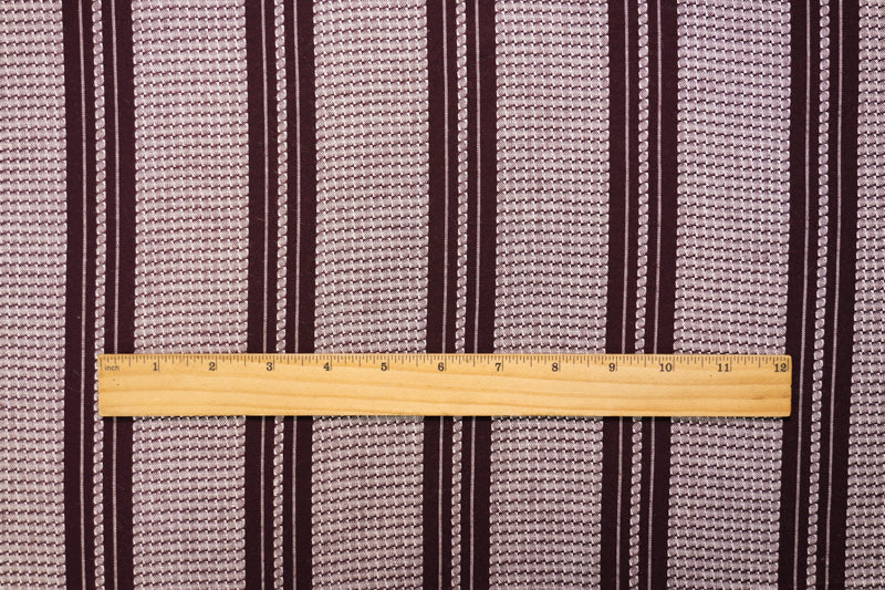 -This rayon-cotton showcases a vertical stripe pattern enhanced by a dobby weave for a refined texture. The fabric provides a comfortable, durable hand perfect for shirting and casual tailored garments.