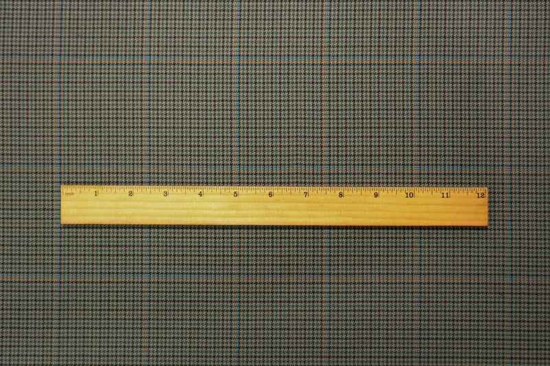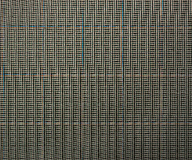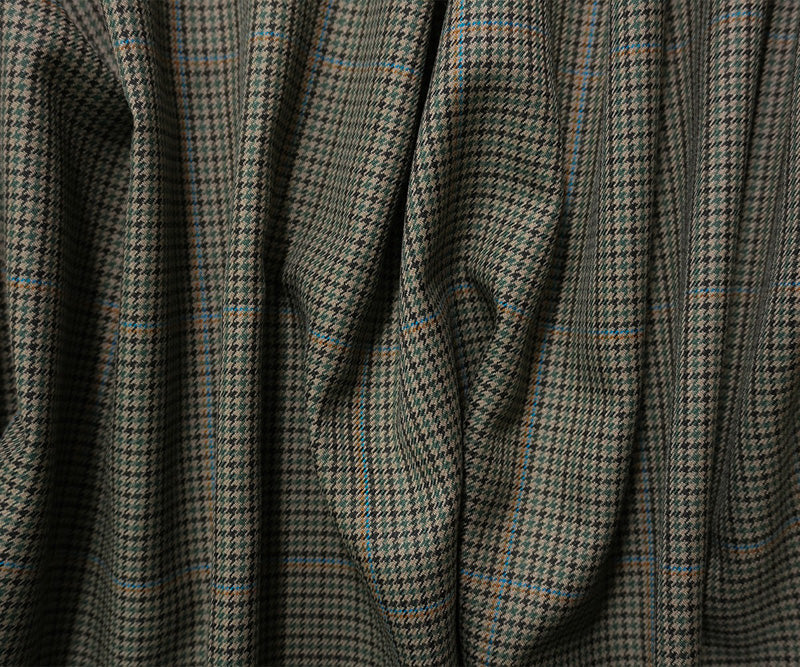 Taupe-Green-Multi Wool Poly Houndstooth Twill Woven Suiting Fabric