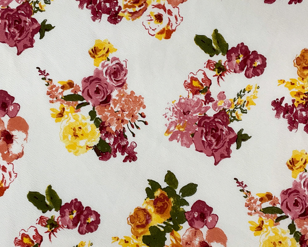 -White-Red-Multi Poly Stretch Spandex Floral Printed Double Knit Fabric