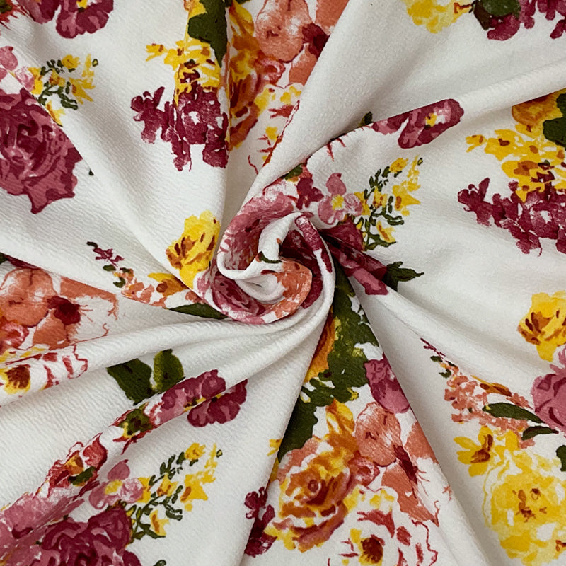 White-Red-Multi Poly Stretch Floral Printed Double Knit Fabric