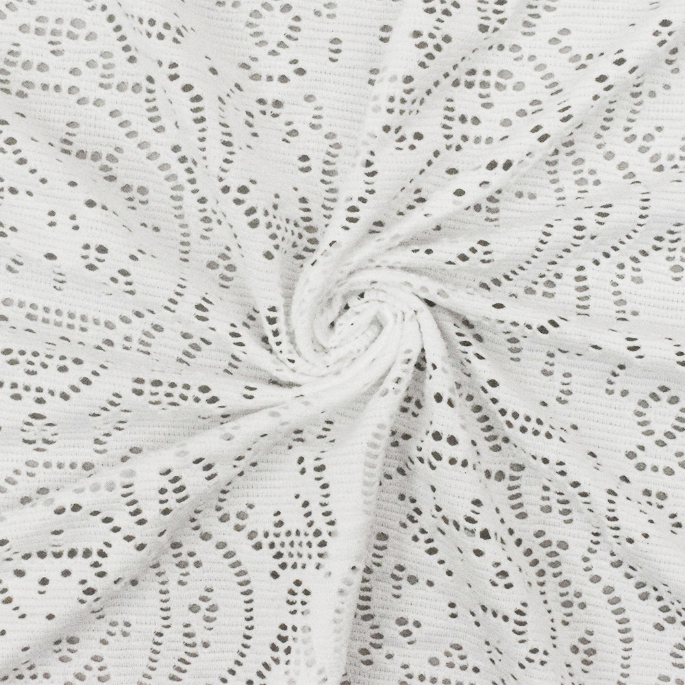 1 5/8 YD PC-Milk White Medallion Floral Stretch Nylon Crochet Knit Fabric