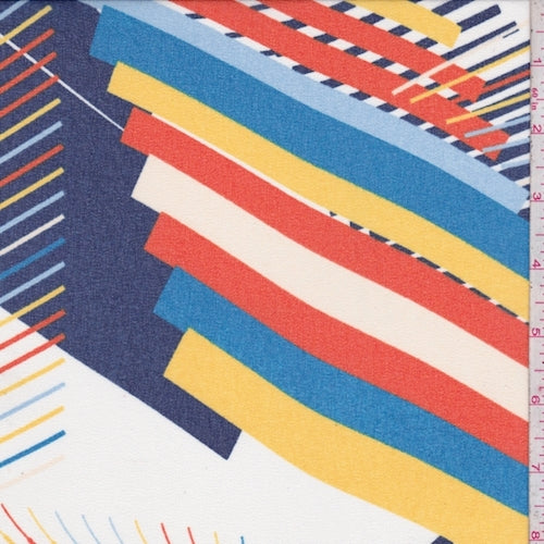 3 7/8 YD PC-White/Navy/Yellow Abstract Crepe Georgette Fabric