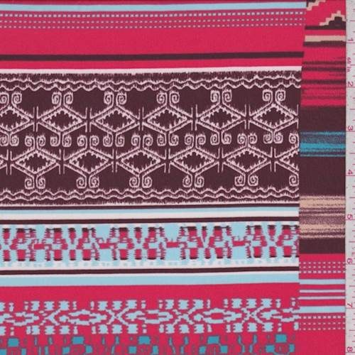 3 YD PC-Coral/Maroon Deco Patchwork Activewear/Swimwear Fabric