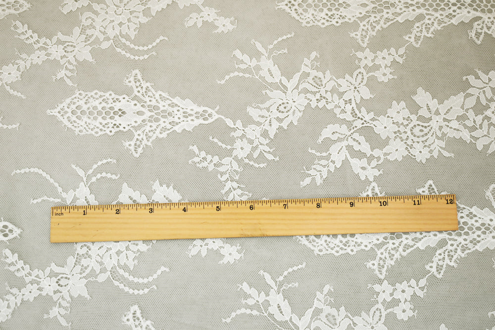 3 YD PC-White Nylon Poly Floral Embroidered Mesh Knit Fabric