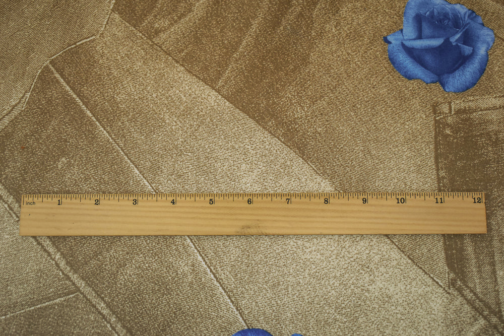 Blue-Brown NyIon Stretch Spandex Floral Tile Printed Knit Fabric