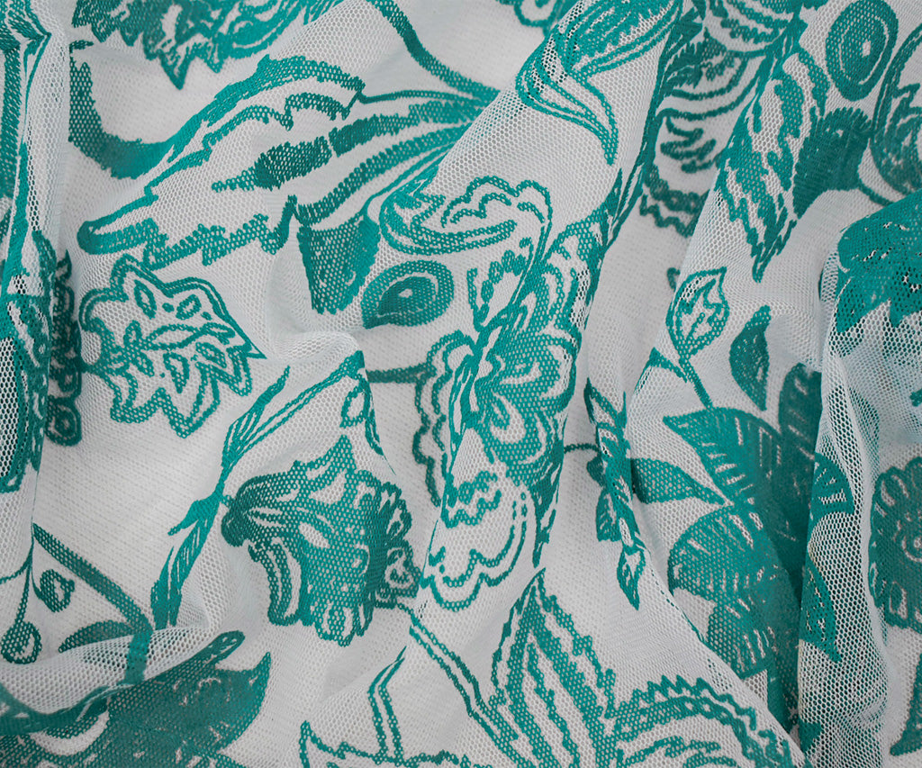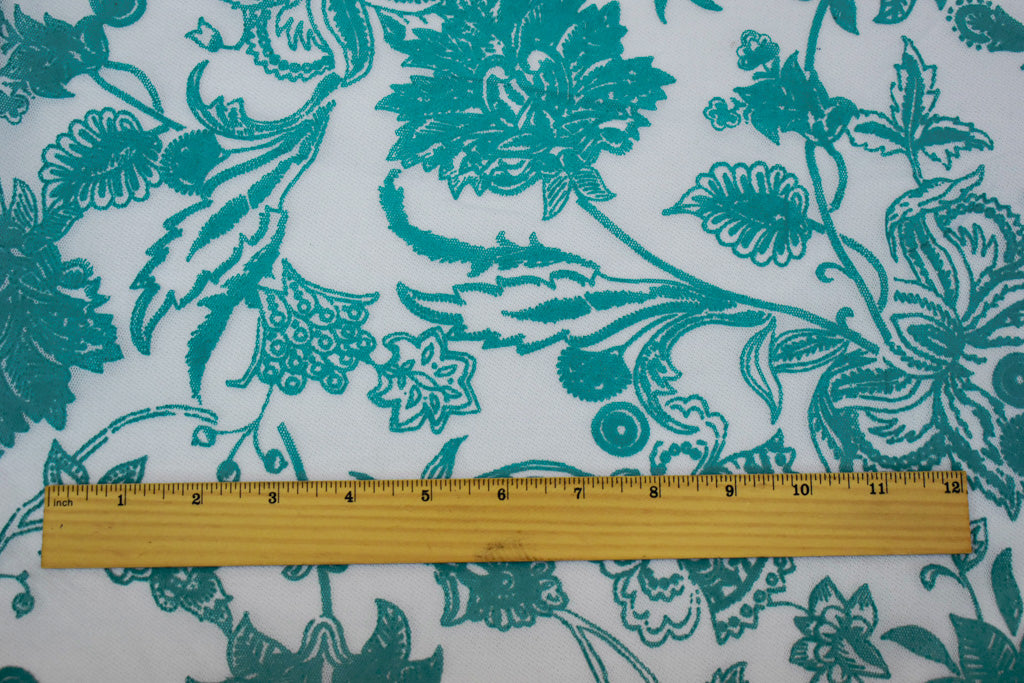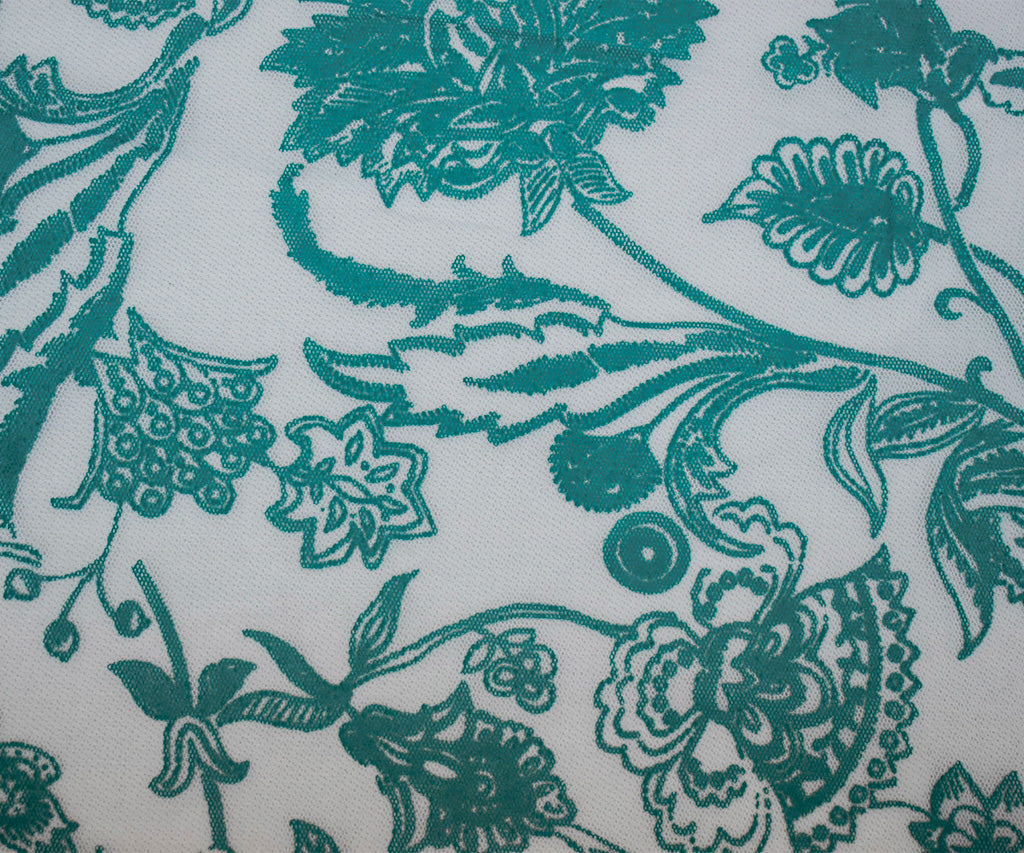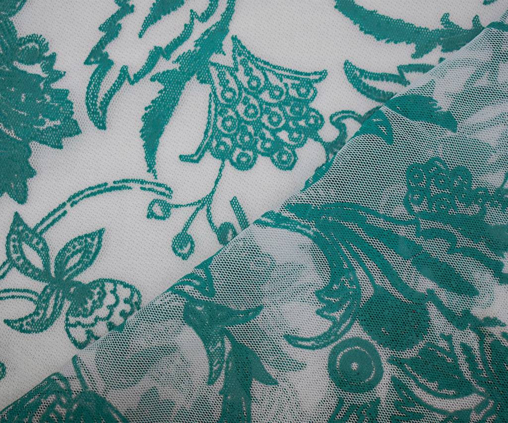 Dark Teal-White Nylon Floral Printed Mesh Tulle Knit Fabric