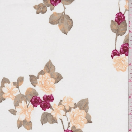 ITY Ivory/Golden/Berry Floral Sprig Jersey Knit Fabric