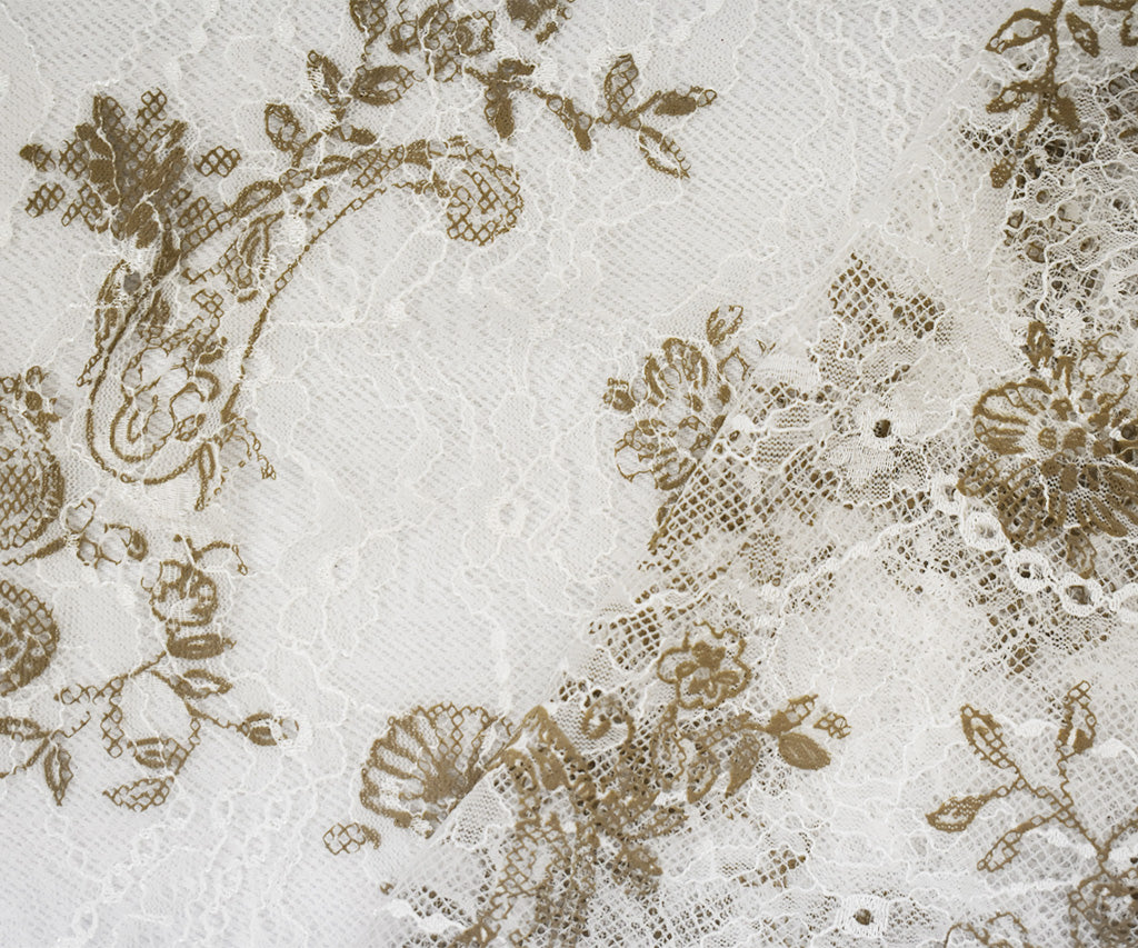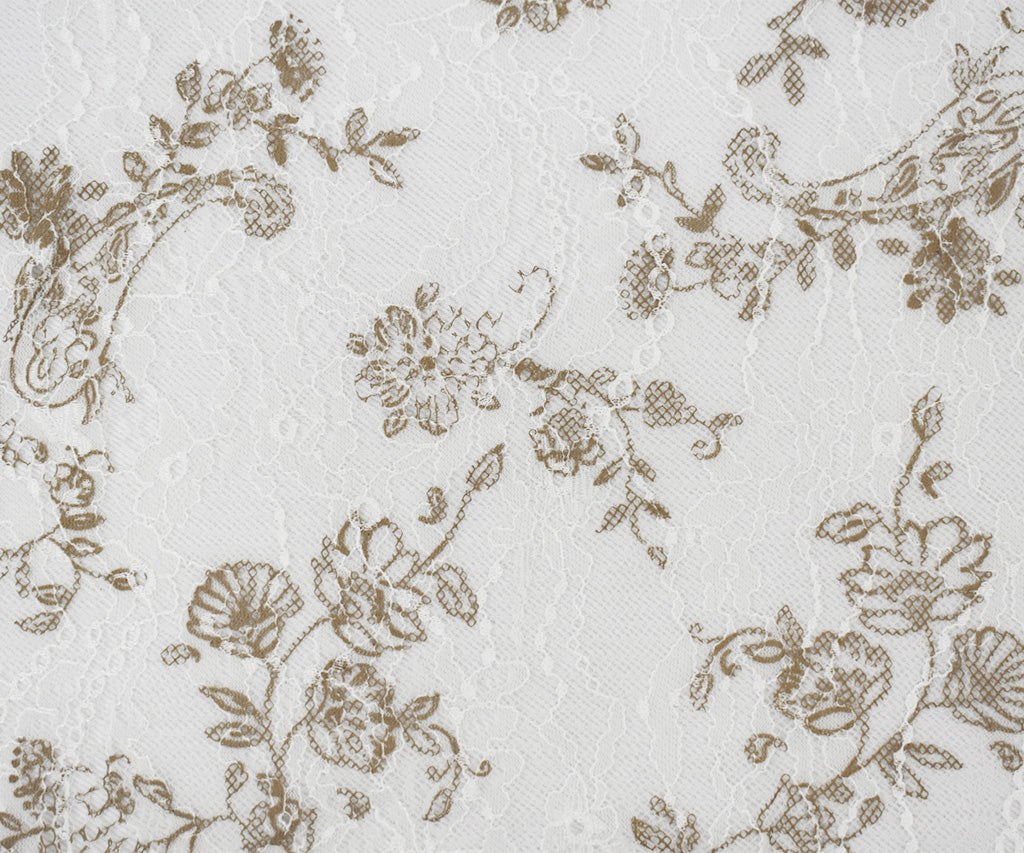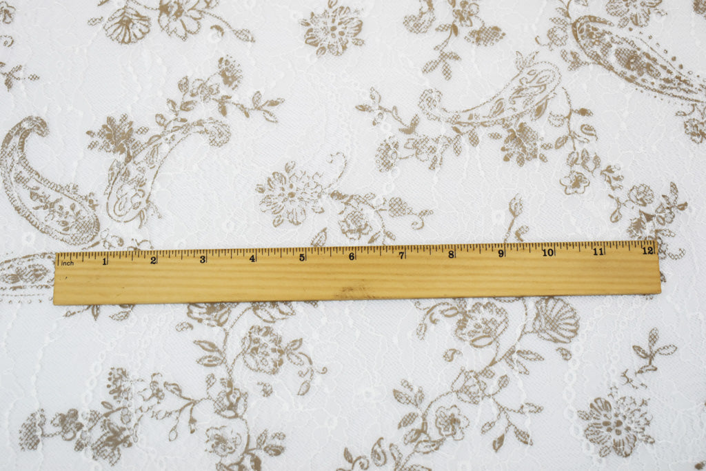 White-Brown Nylon Floral Printed Lace Mesh Knit Fabric