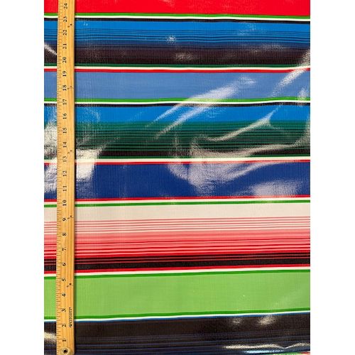 Royal Blue Multi Stripe Oilcloth Fabric - Reorderable