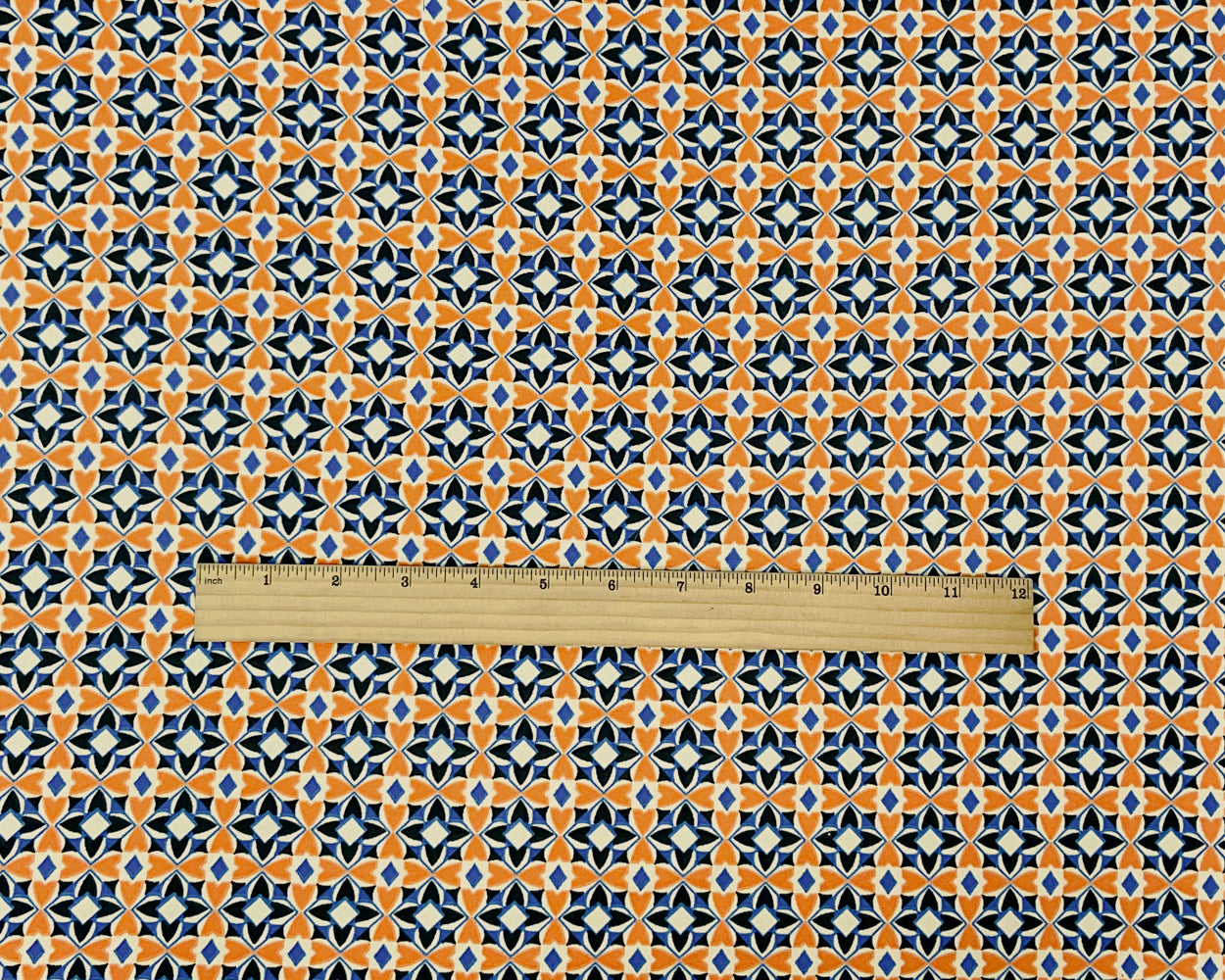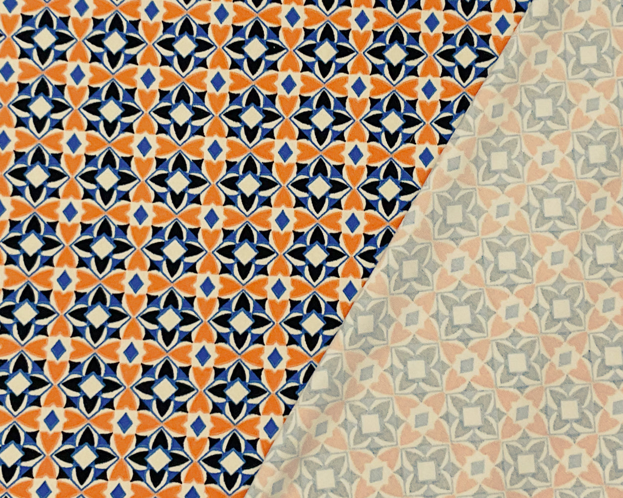 Orange-Multi Poly Stretch Spandex Floral Tile Print DB Jersey Knit Fabric