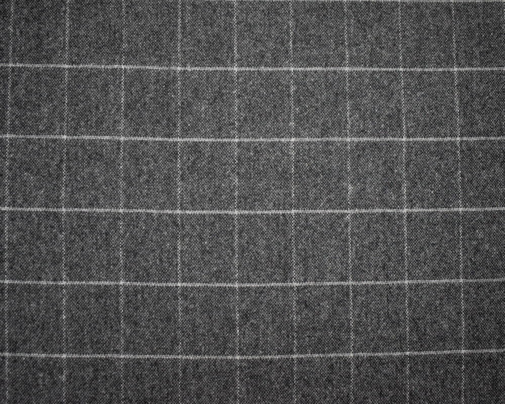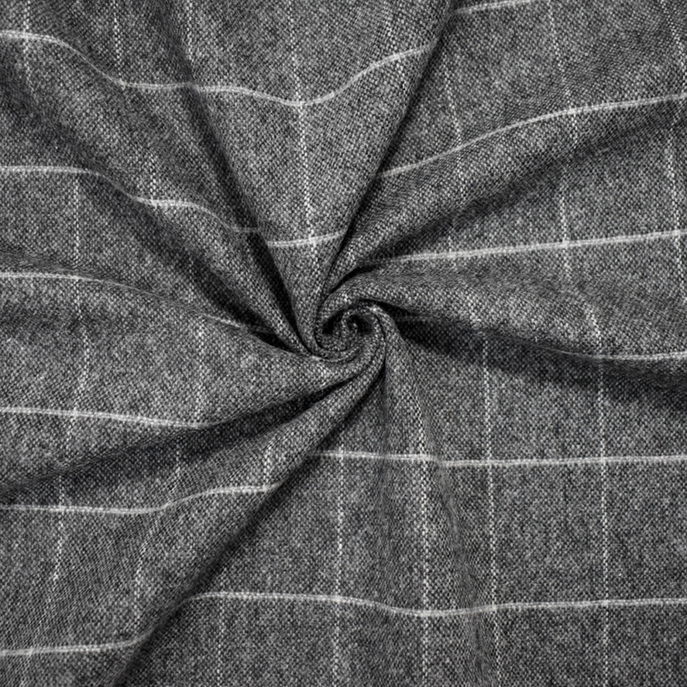Black-Gray Wool Poly Japanese Grid-Check Woven Jacketing Fabric