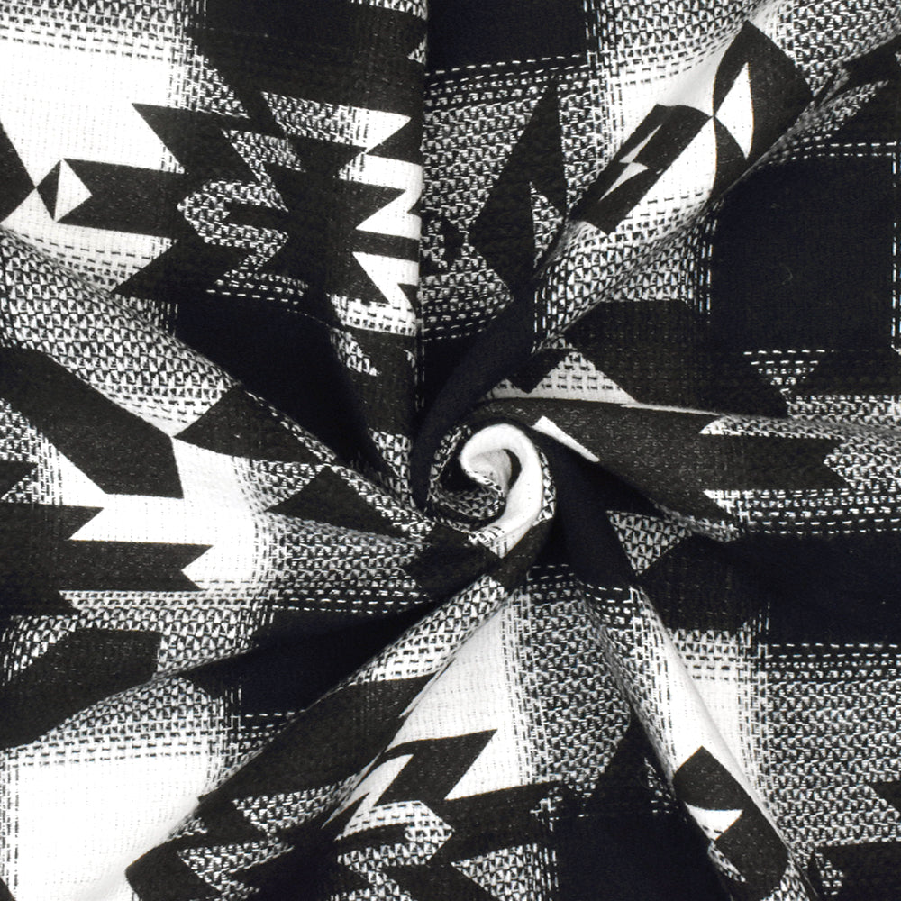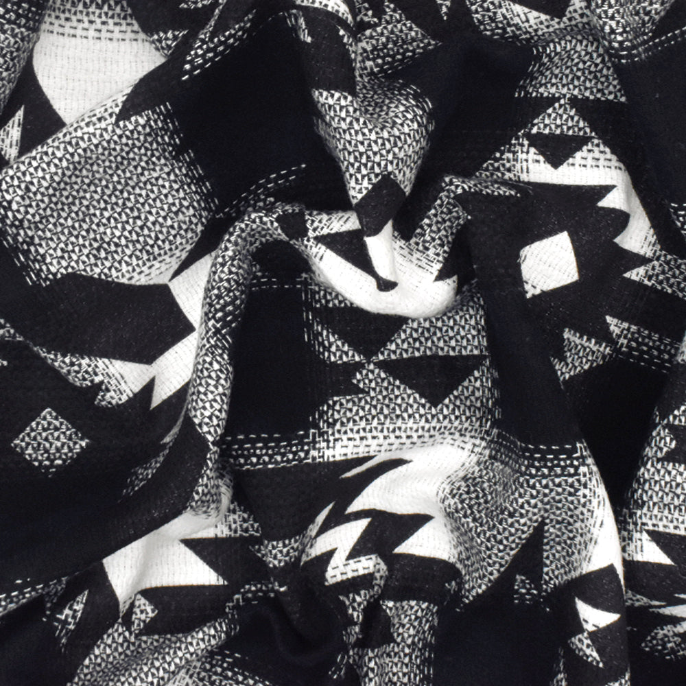 Black-White-Blue Tribal Printed Cotton Check Dobby Woven Fabric