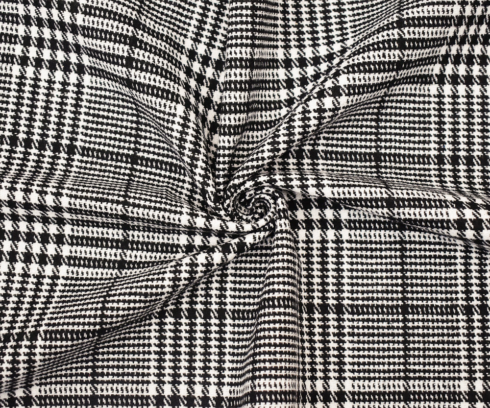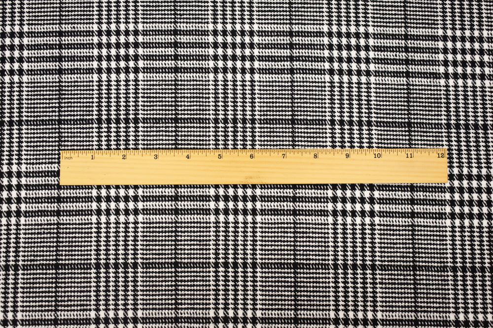 Black-White Melton Poly-Wool Glen Plaid Woven Jacketing Fabric
