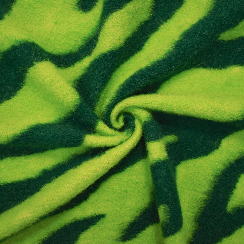 Bright Green Italian Boiled Wool-Poly Zebra Knit Coating Fabric