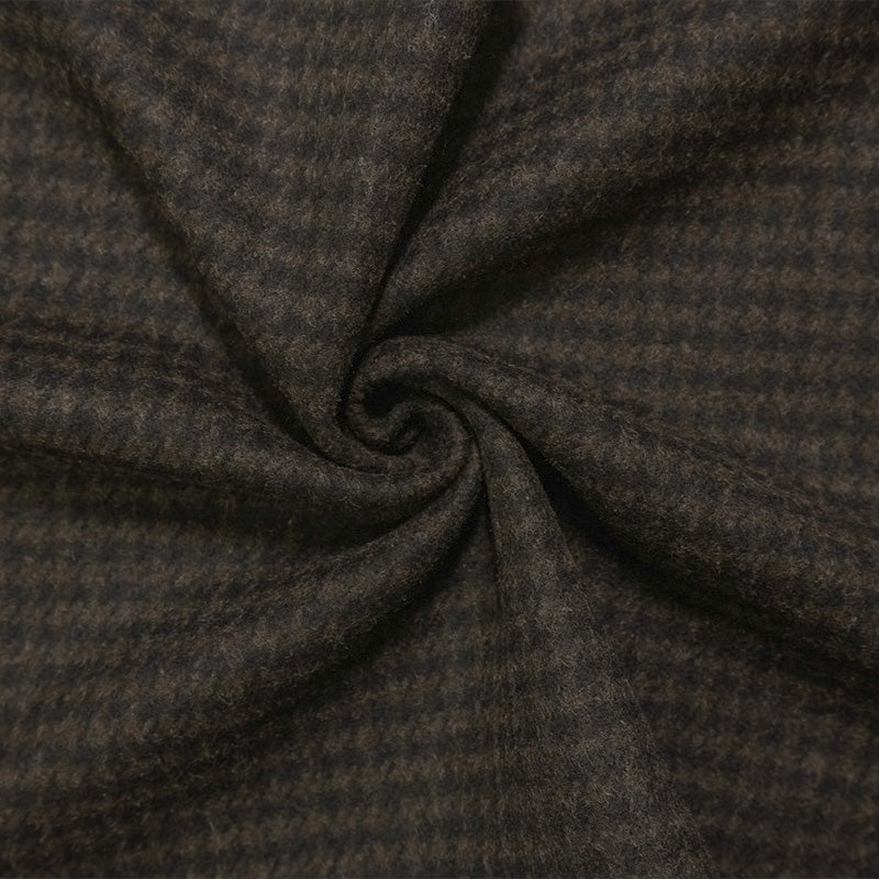 Brown-Black Wool Poly Houndstooth Twill Woven Coating Fabric