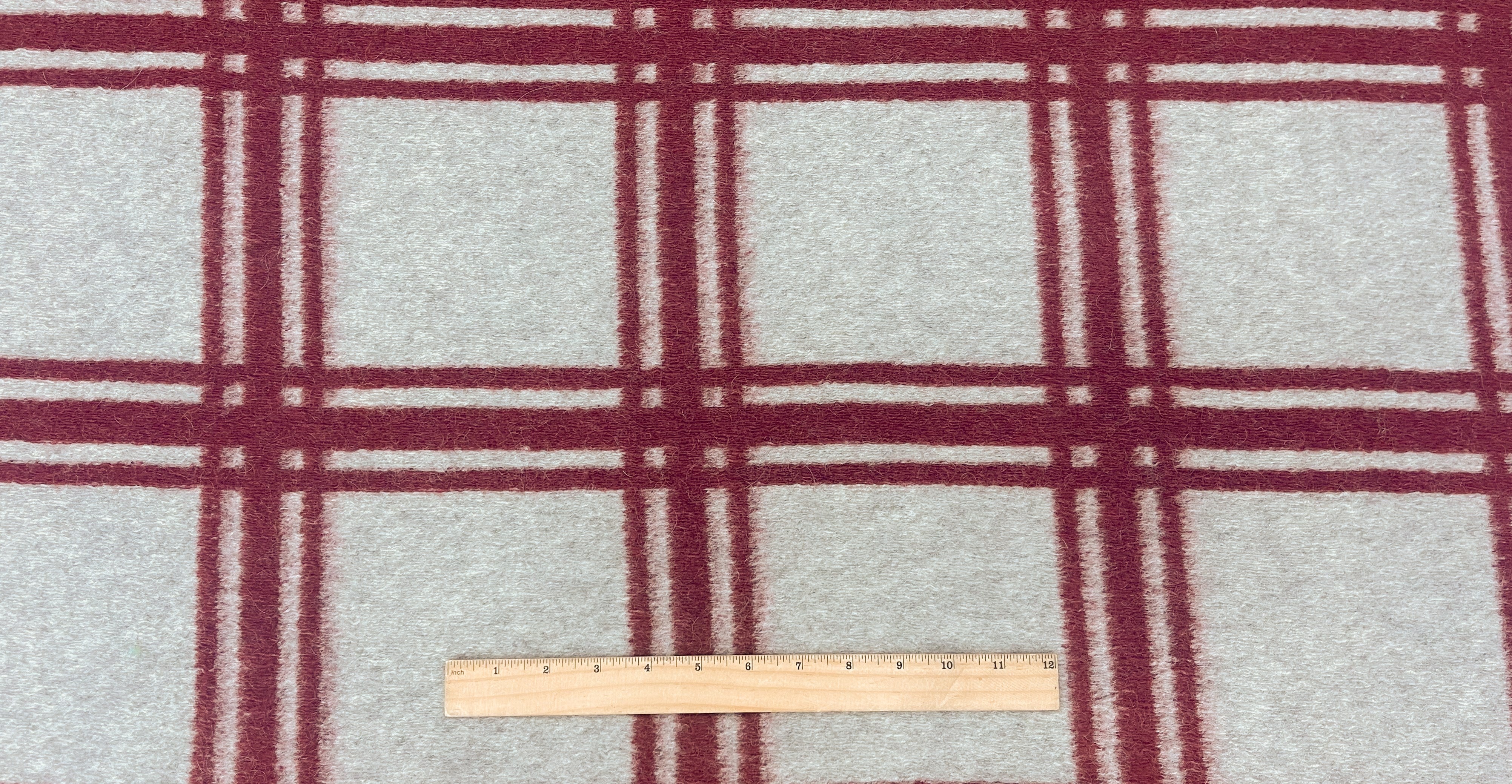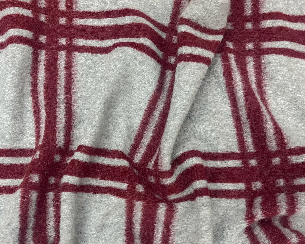 Burgundy Red-Medium Italian Boiled Wool-Poly Plaid Knit Coating Fabric